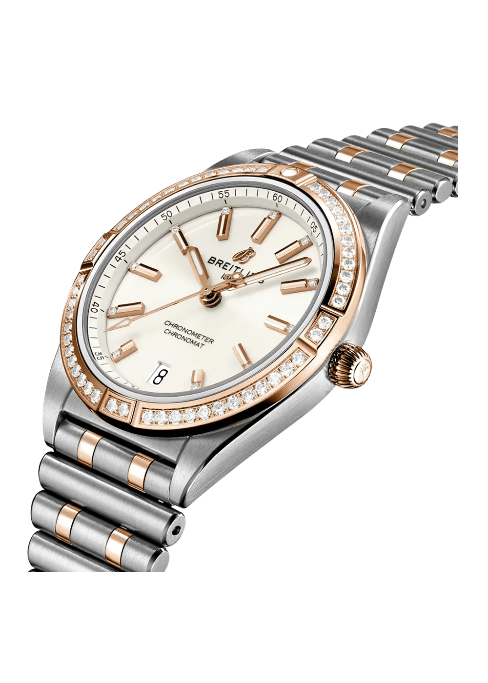The breathtaking watches in the Chronomat collection for women are equipped with the legendary Rouleaux bracelet with double folding clasp, which is as robust as it is elegant. Since the 1940s, Breitling has been producing various models specifically for women. Like all Breitling watches, the Chronomat models are COSC certified.