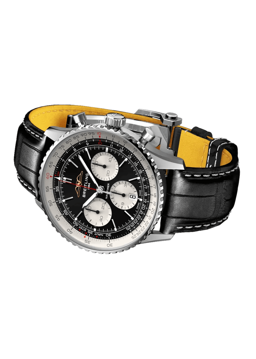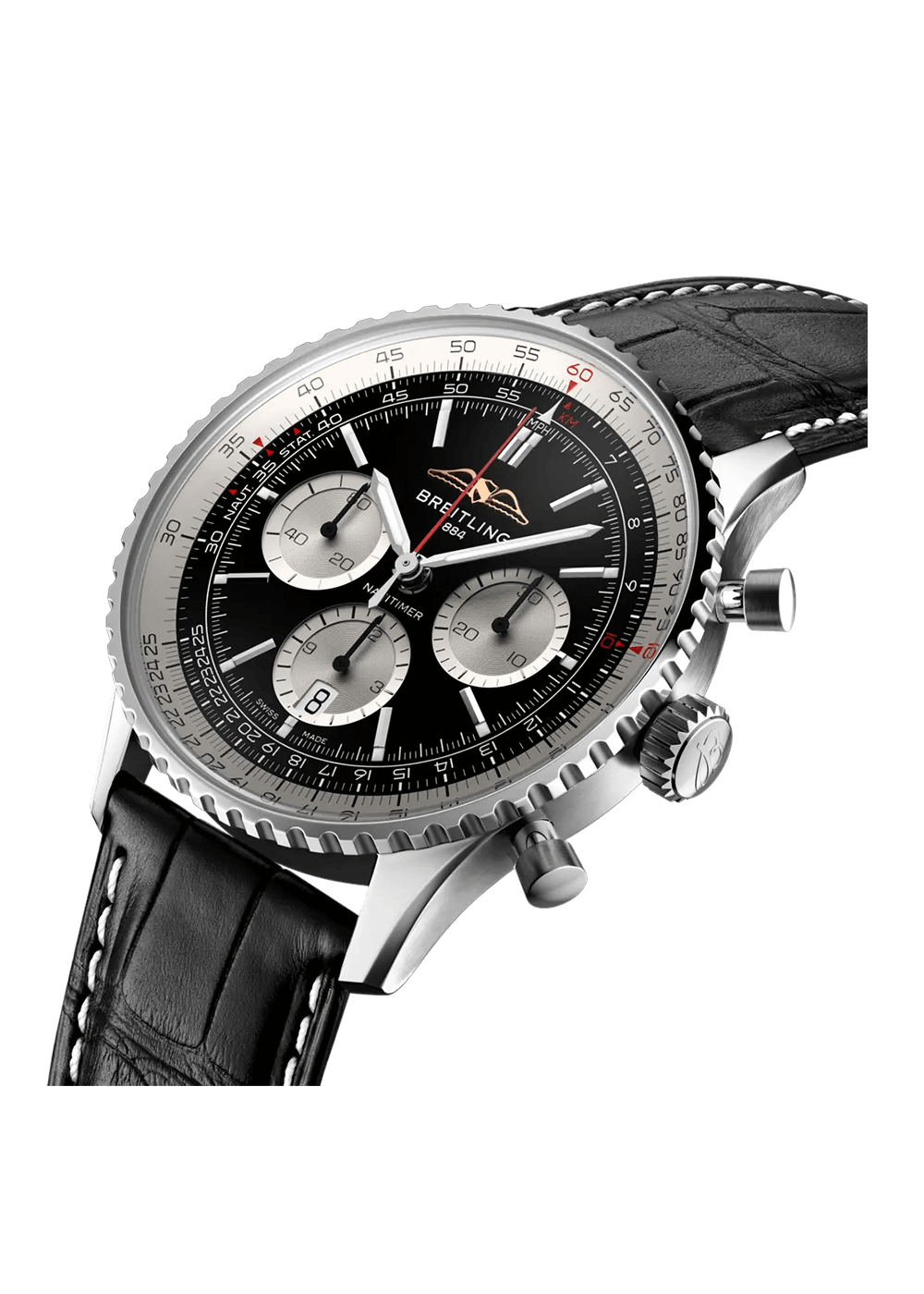 A flattened slide rule and domed glass create the impression of a more compact profile. Polished and brushed finishes give the metal elements a high-end, shiny yet understated look. Worn by astronauts in space and by the world’s biggest stars, this is Breitling’s most legendary timepiece and one of the most distinctive watches of all time.