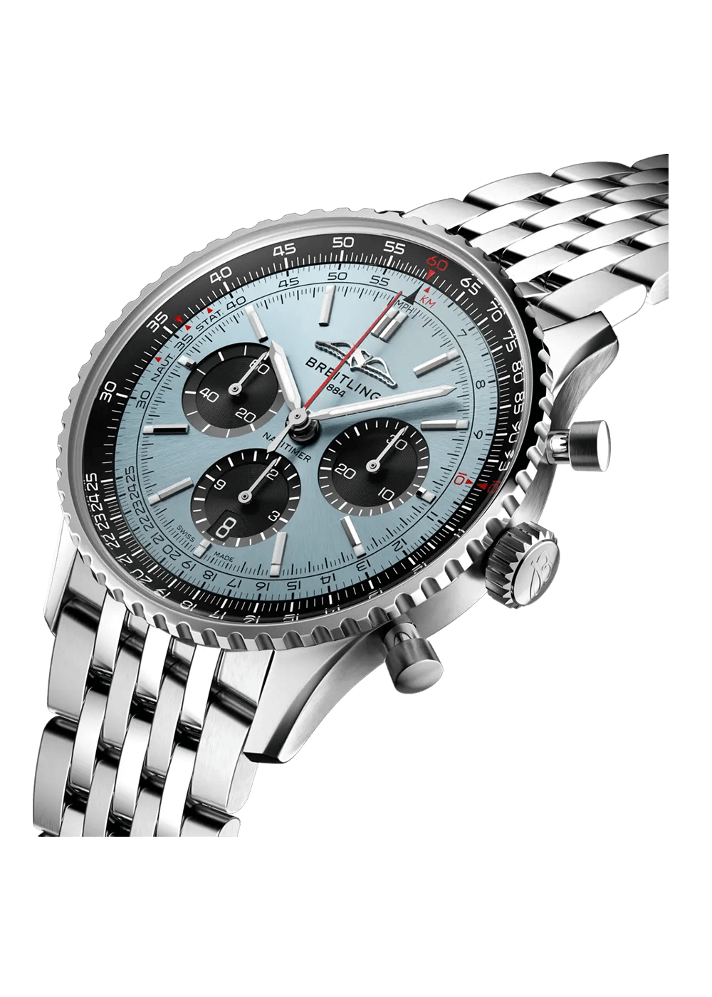 A flattened slide rule and domed glass create the impression of a more compact profile. Polished and brushed finishes give the metal elements a high-end, shiny yet understated look. Worn by astronauts in space and by the world’s biggest stars, this is Breitling’s most legendary timepiece and one of the most distinctive watches of all time.