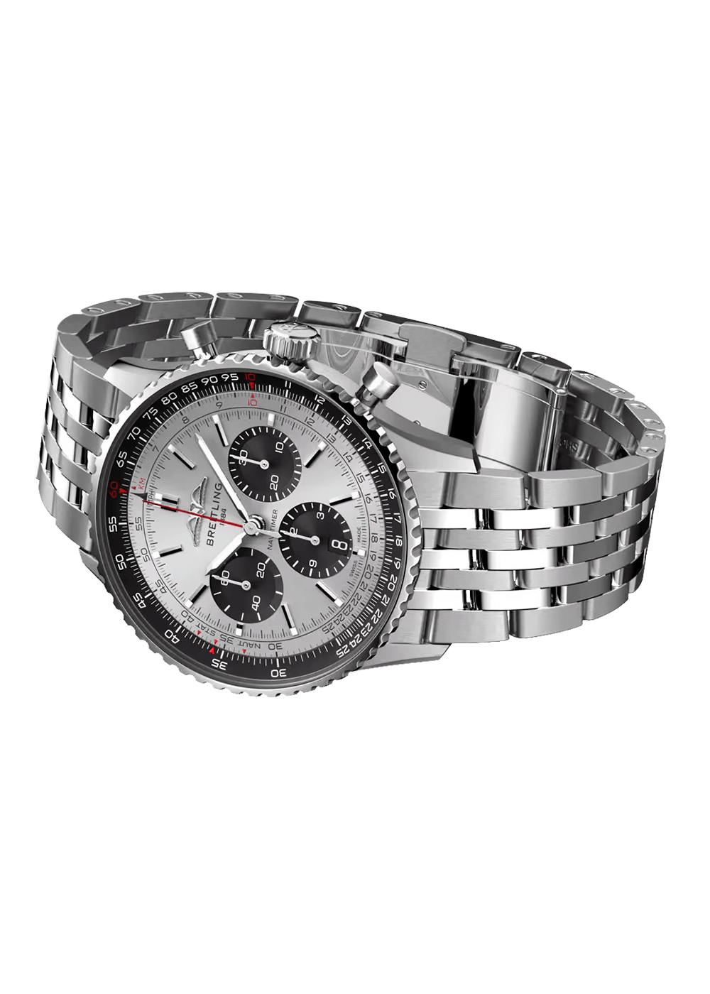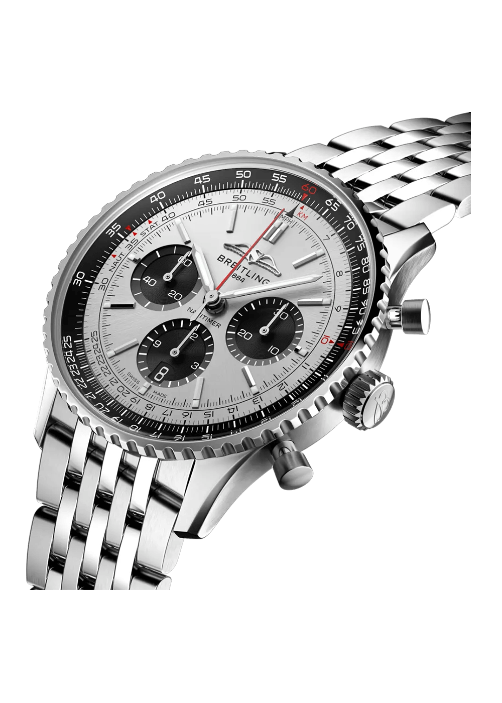 A flattened slide rule and domed glass create the impression of a more compact profile. Polished and brushed finishes give the metal elements a high-end, shiny yet understated look. Worn by astronauts in space and by the world’s biggest stars, this is Breitling’s most legendary timepiece and one of the most distinctive watches of all time.