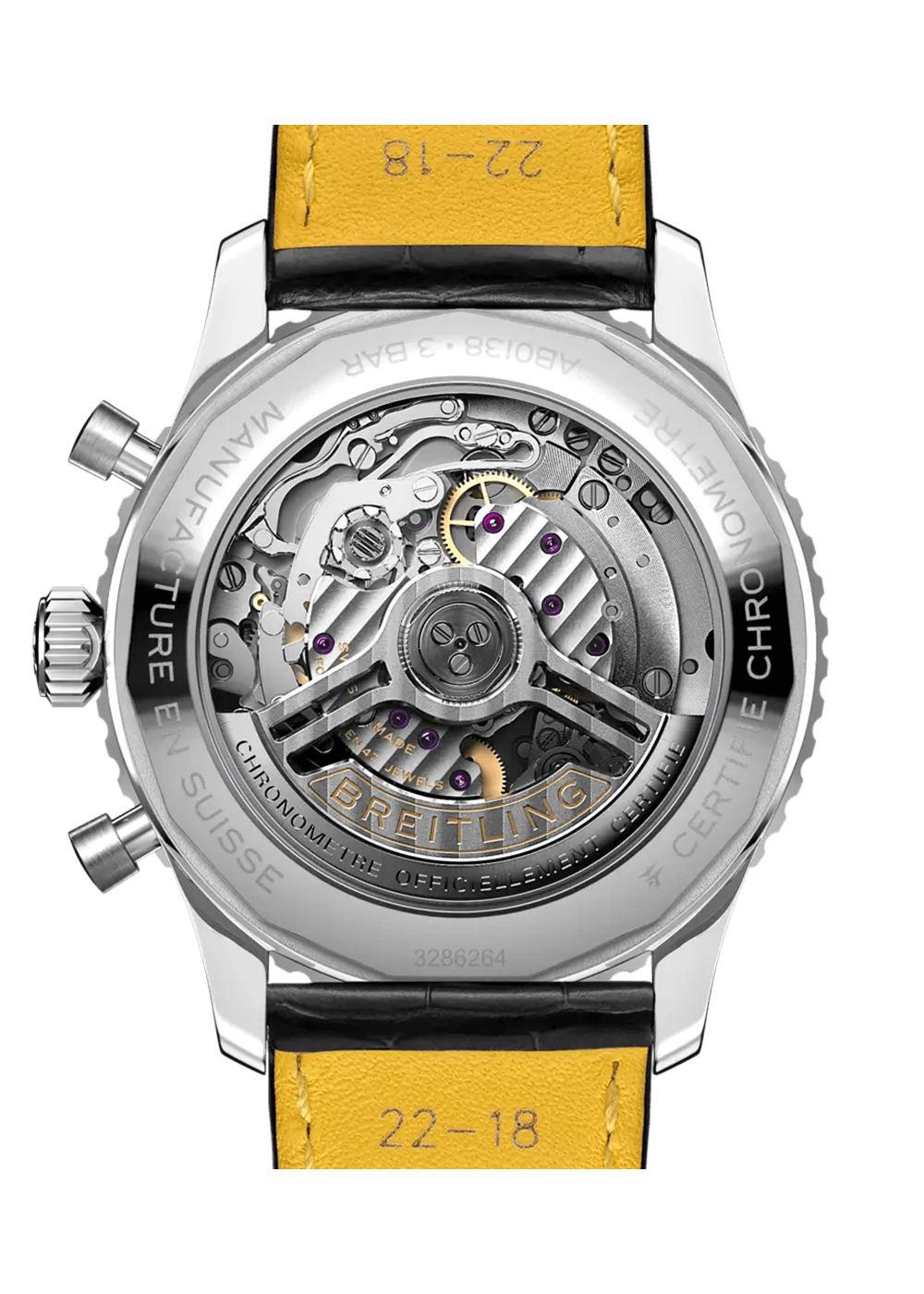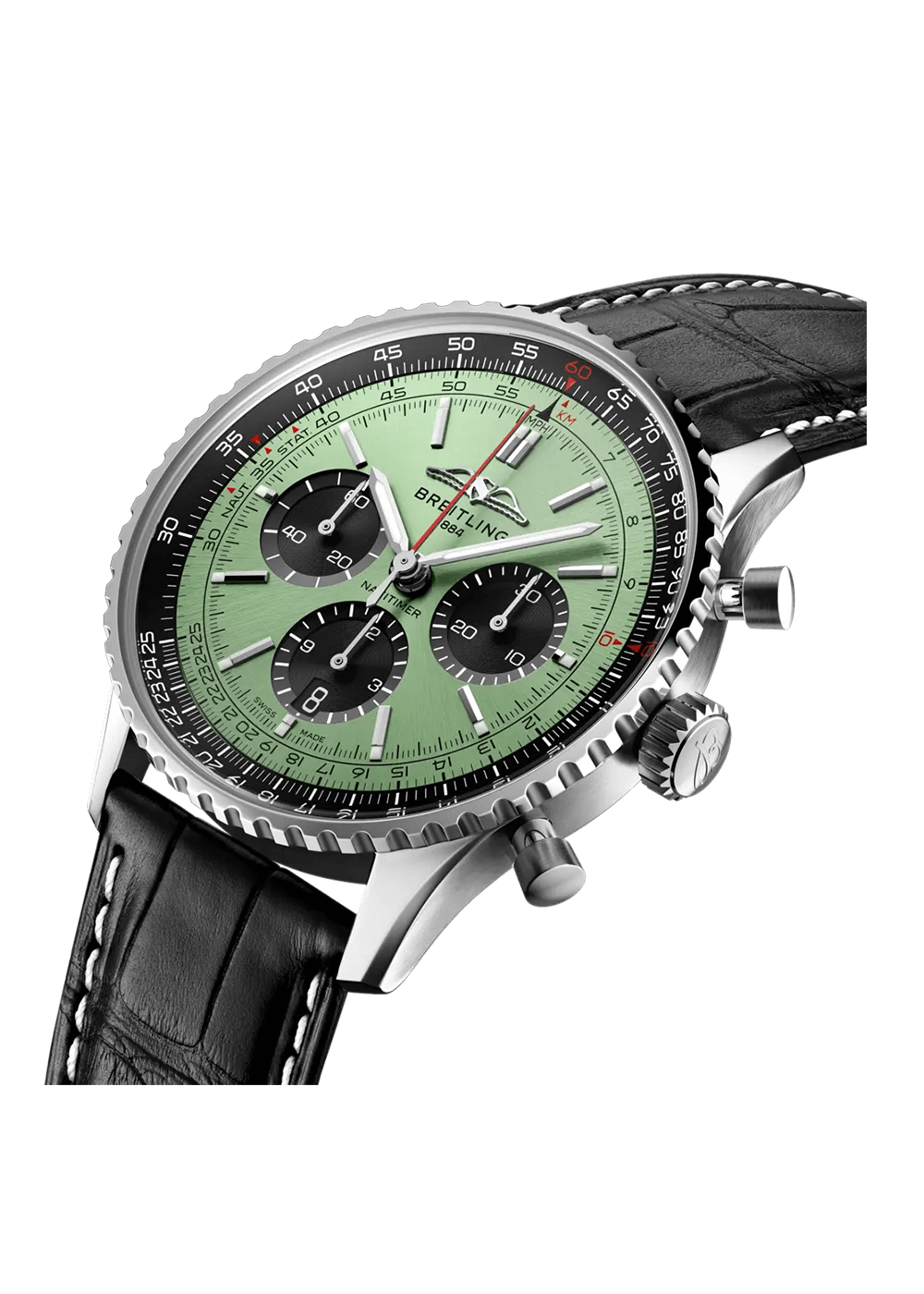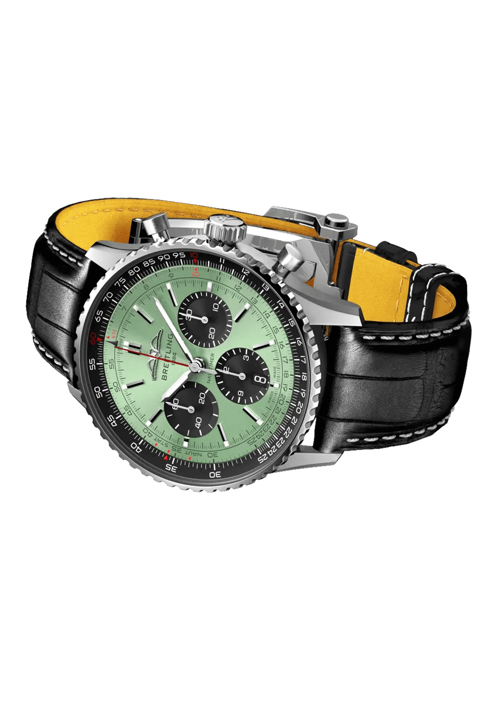 A flattened slide rule and domed glass create the impression of a more compact profile. Polished and brushed finishes give the metal elements a high-end, shiny yet understated look. Worn by astronauts in space and by the world’s biggest stars, this is Breitling’s most legendary timepiece and one of the most distinctive watches of all time.