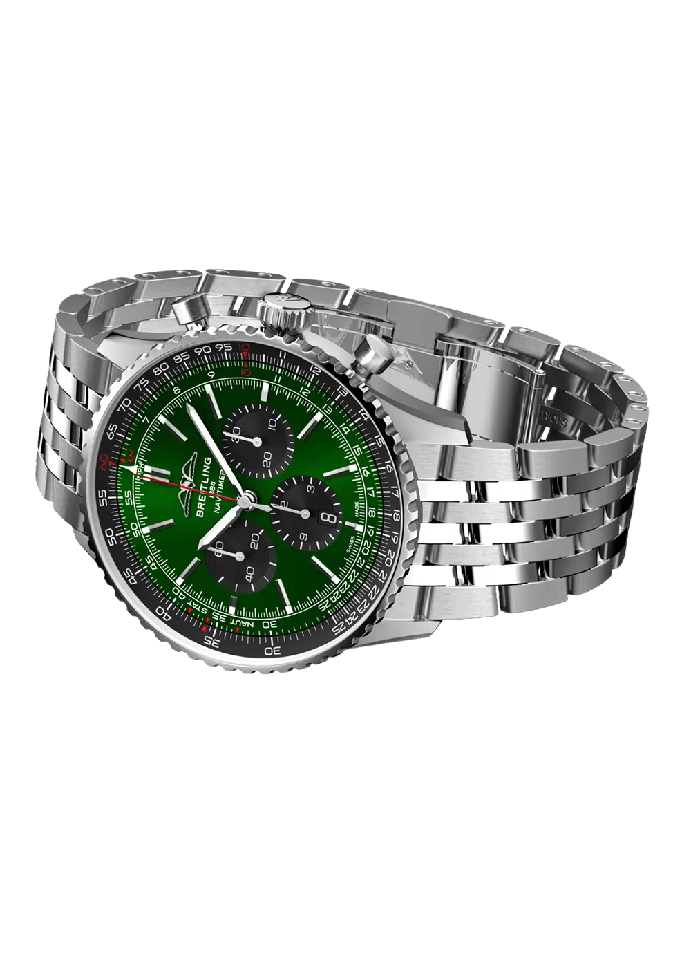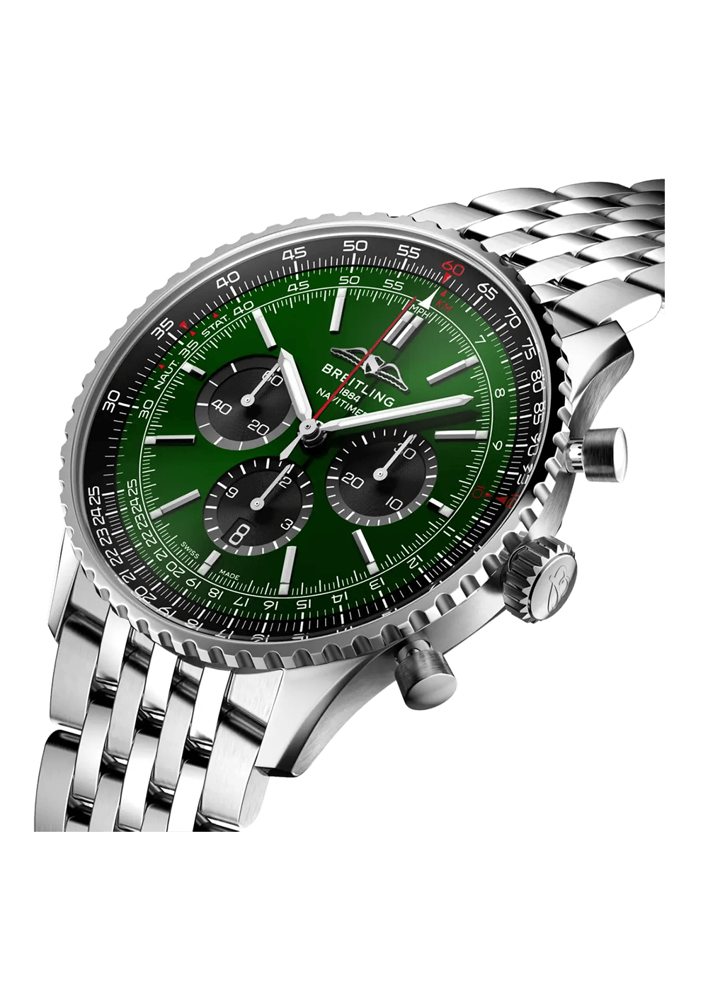 A flattened slide rule and domed glass create the impression of a more compact profile. Polished and brushed finishes give the metal elements a high-end, shiny yet understated look. Worn by astronauts in space and by the world’s biggest stars, this is Breitling’s most legendary timepiece and one of the most distinctive watches of all time.