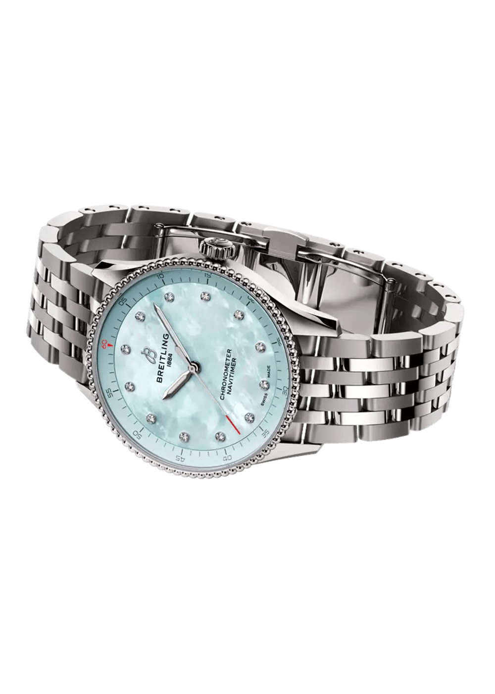 The icon now comes in 36 and 32 mm sizes for women and men who love the look and feel of a watch with a smaller diameter. While the 36mm Navitimer features the beaded bezel and iconic circular slide rule that give the Navitimer its distinctive look, the impressive 32mm variant forgoes the slide rule in favor of a simpler dial design tailored to the slim diameter.