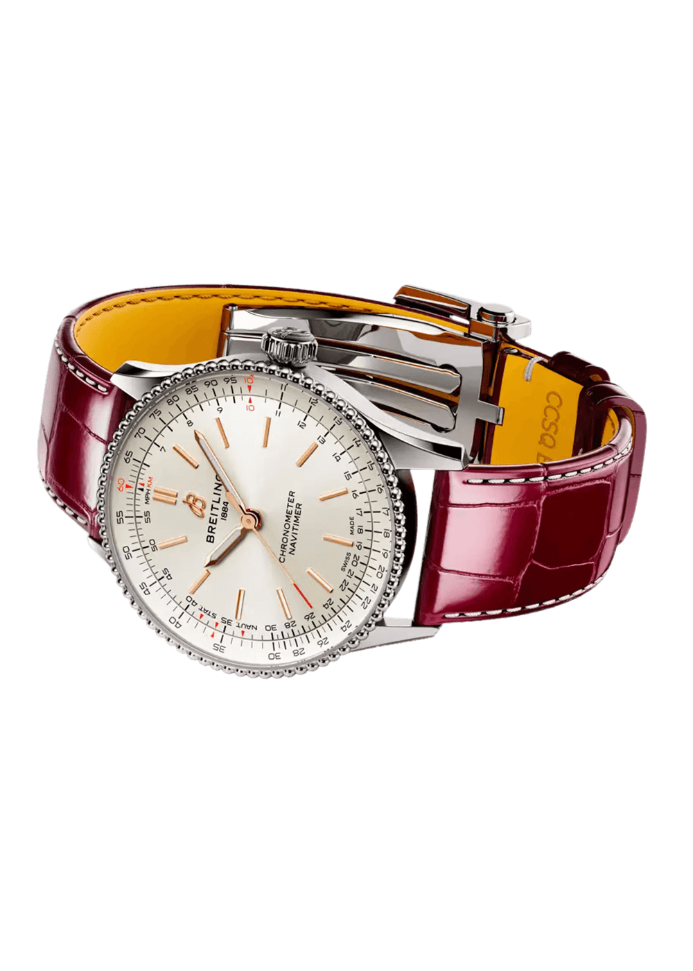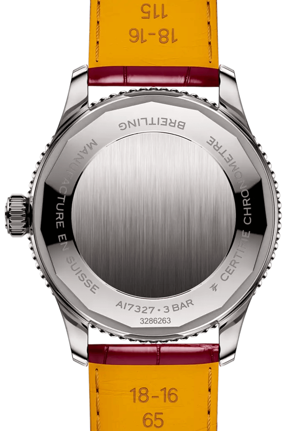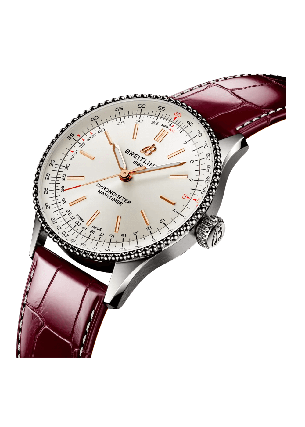 The icon now comes in 36 and 32 mm sizes for women and men who love the look and feel of a watch with a smaller diameter. While the 36mm Navitimer features the beaded bezel and iconic circular slide rule that give the Navitimer its distinctive look, the impressive 32mm variant forgoes the slide rule in favor of a simpler dial design tailored to the slim diameter.