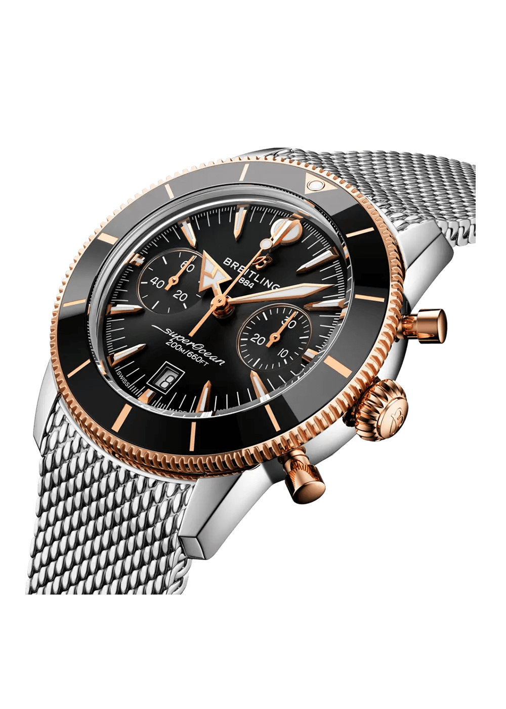 Made to move between the waves and the shore. The Superocean Heritage is no ordinary sea watch – it never was. When Breitling first launched it in 1957, the company took a different approach to other diving watches of the time. The Ref. 1004 (a slim piece of jewellery that only displays the time) and the Ref. 807 (the world’s first dedicated diving chronograph) were not just about exploring the underwater world, but also about doing it well. The spear-and-arrow hands, the anodised rotating bezel and the naturally slim proportions quickly made it a favourite of stylish adventurers who lived for the sea and the scene.