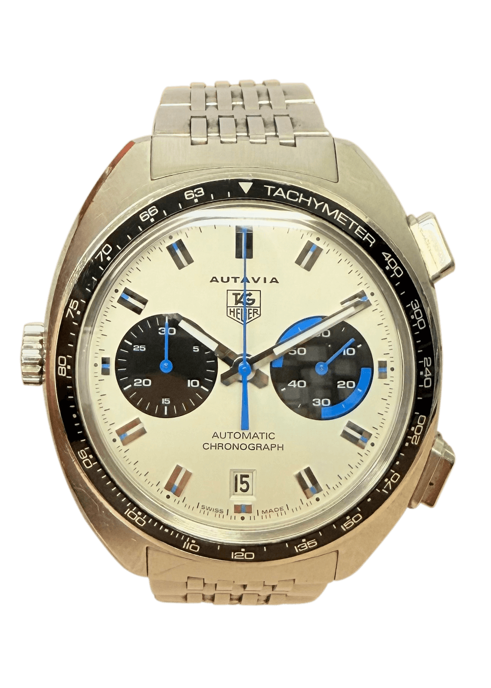 This TAG Heuer Autavia is a fascinating tribute to the golden age of motorsport, bringing the spirit of the 1970s right back to life on your wrist. With its distinctive cushion case and characteristic crown on the left-hand side, it pays homage to the legendary original reference 1163, once prized by racing greats. The bright white dial with contrasting blue accents gives it a fresh, sporty vintage look that perfectly combines technical heritage with modern lifestyle.