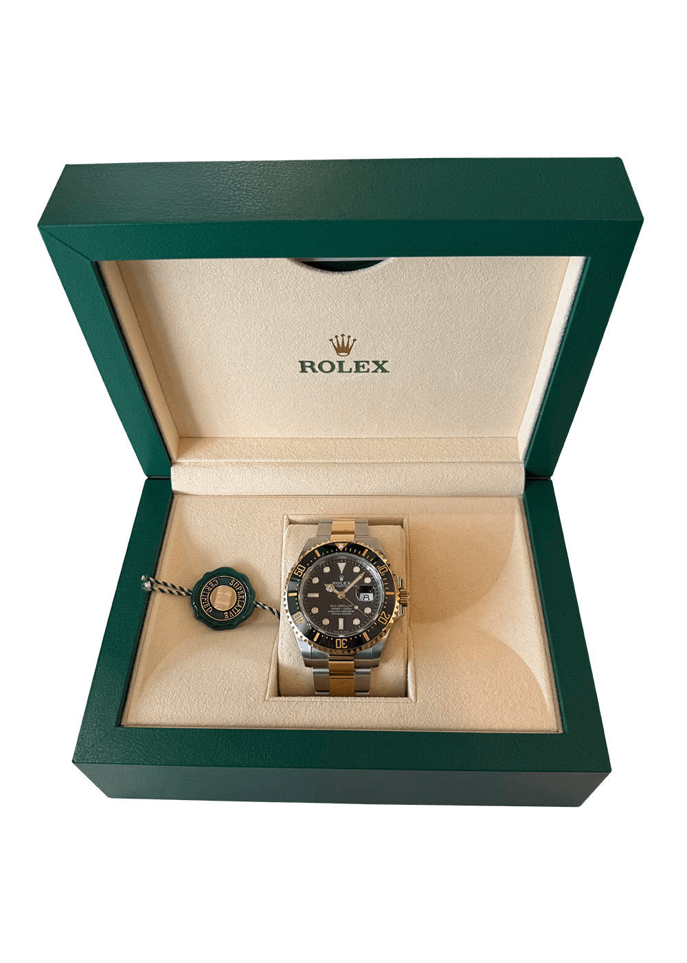 The Rolex Sea-Dweller is an iconic professional diving chronometer that combines the depths of the ocean with the elegance of yellow gold. Born for extreme demands and equipped with the legendary helium escape valve, this timepiece proves that uncompromising performance and luxurious presence are not mutually exclusive.