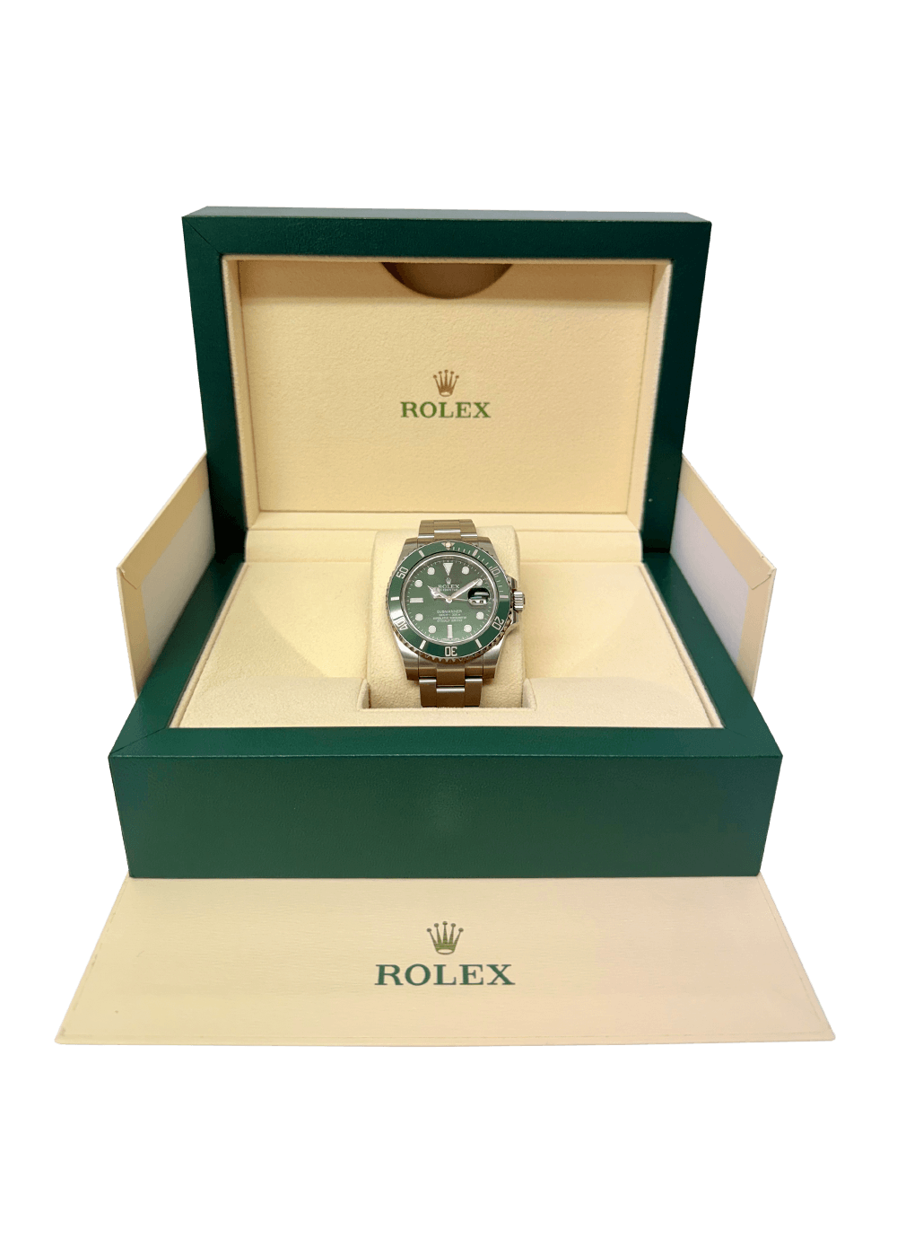 The Rolex Submariner 116610LV “Hulk” seduces with its emerald green sunburst dial and striking ceramic bezel – a powerful, luxurious diving watch with an irresistible presence on the wrist.
