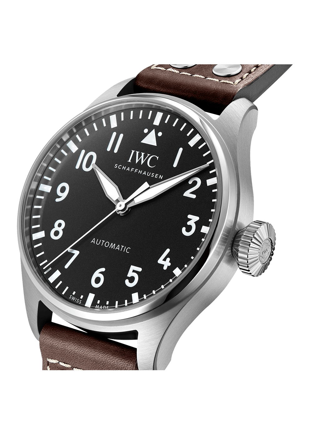 No other model embodies the fascination of IWC Schaffhausen pilot’s watches like the Big Pilot’s Watch. The functional design in the style of an easy-to-read cockpit instrument and the oversized conical crown were inspired by a military observation watch from the 1940s. The oversized crown is another detail that the modern Big Pilot’s Watch shares with its historical ancestor; it allowed pilots to operate their watch even with the padded gloves of their suits.