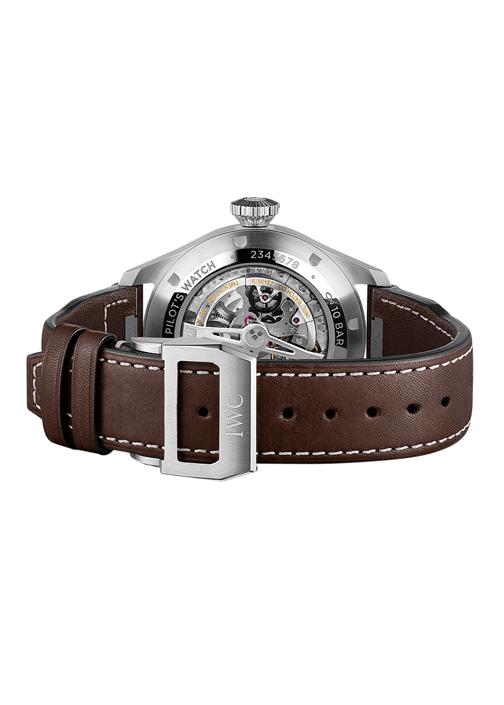 The Pilot’s Watch is powered by the IWC Manufacture Calibre 82100, an automatic movement designed with a focus on maximum precision and reliability. It features the highly efficient automatic winding system developed by Albert Pellaton, which uses the smallest movements of the rotor in both directions to wind the mainspring.