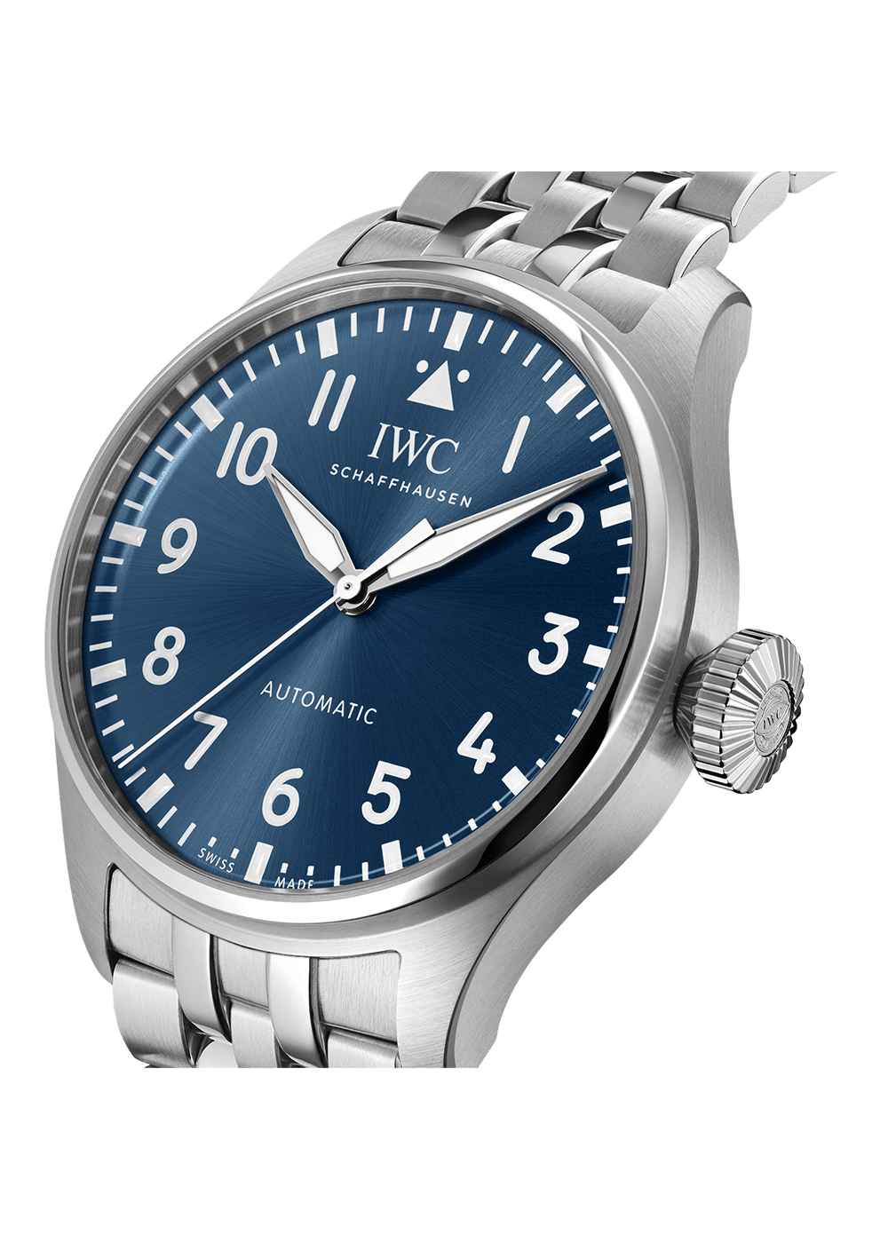 No other model embodies the fascination of IWC Schaffhausen pilot’s watches like the Big Pilot’s Watch. The functional design in the style of an easy-to-read cockpit instrument and the oversized conical crown were inspired by a military observation watch from the 1940s. The oversized crown is another detail that the modern Big Pilot’s Watch shares with its historical ancestor; it allowed pilots to operate their watch even with the padded gloves of their suits.