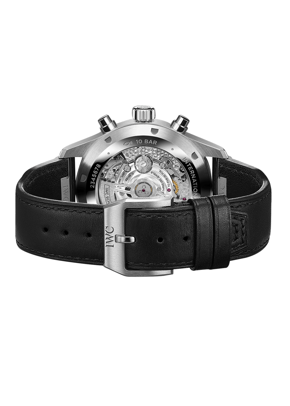 The IWC manufacture calibre 69385, a precise and robust chronograph movement in classic column-wheel design, enables stop or add times to be measured for up to 12 hours. Thanks to the integrated EasX-CHANGE® system, the strap can be changed easily and without additional tools.