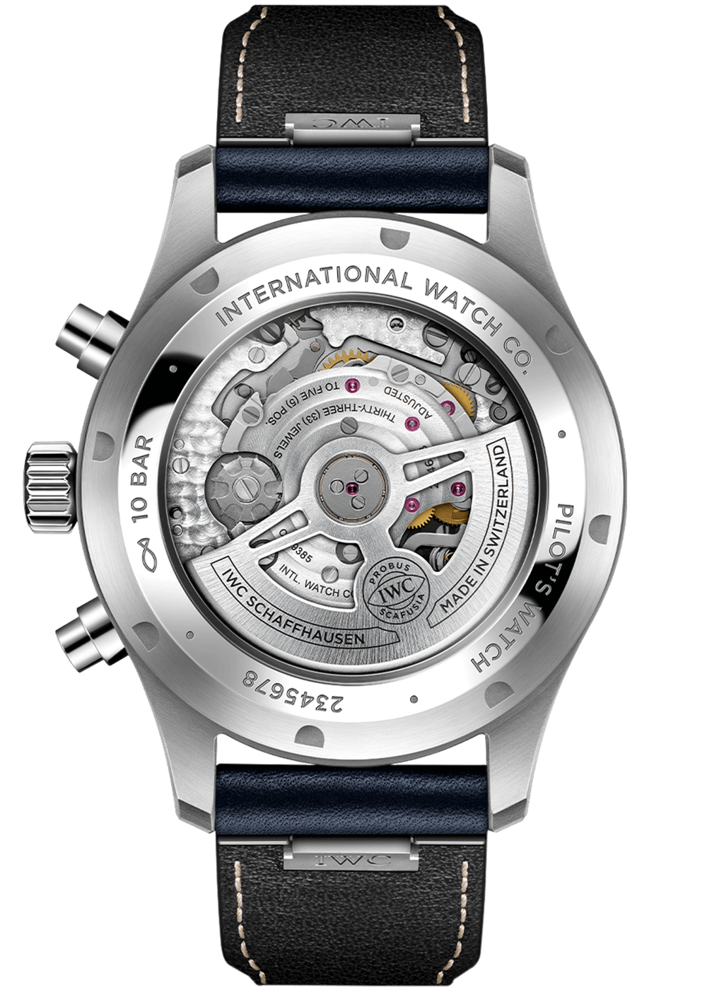 The IWC manufacture calibre 69385, a precise and robust chronograph movement in classic column-wheel design, enables stop or add times to be measured for up to 12 hours. Thanks to the integrated EasX-CHANGE® system, the strap can be changed easily and without additional tools.