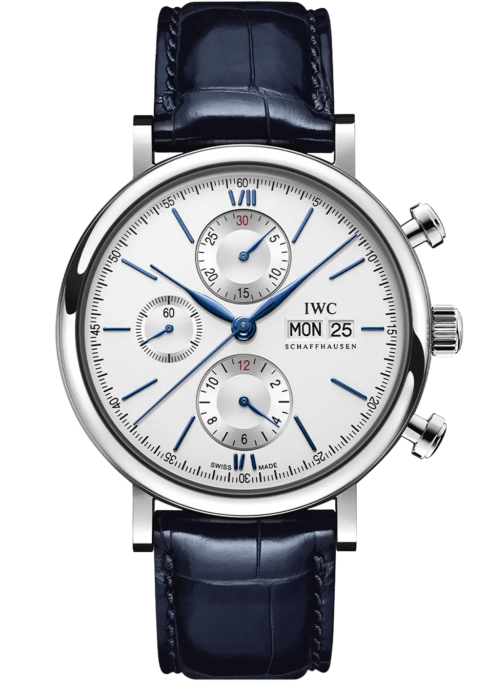 With its sporty, elegant pushers and time measurement displays, the Portofino Chronograph draws on design elements from the 1960s.