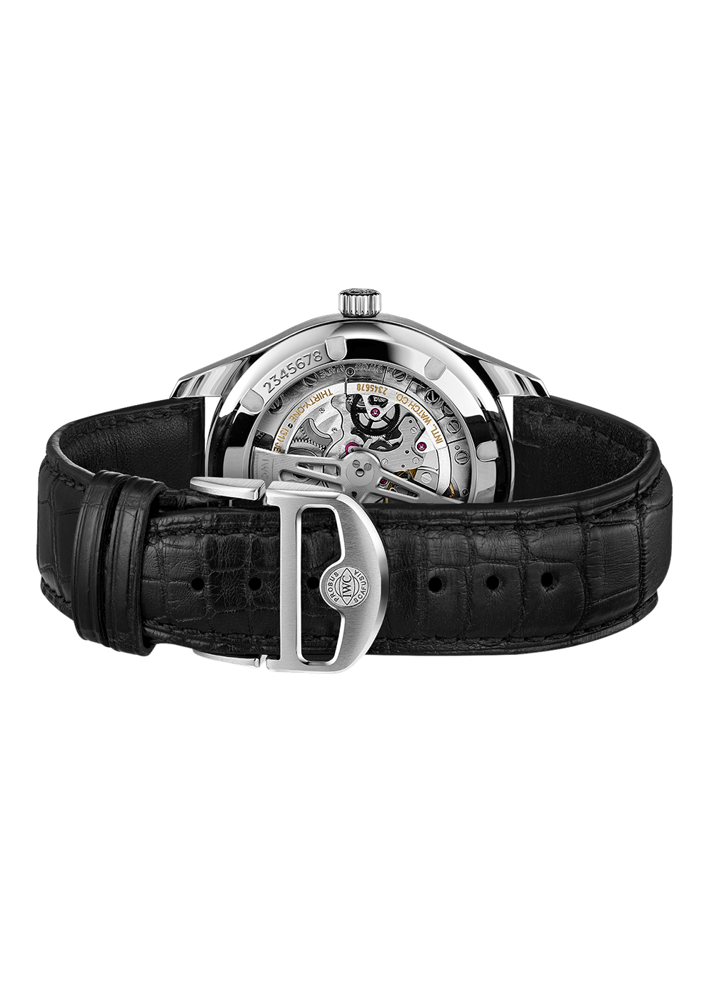 The precise automatic movement is based on IWC’s Manufacture Calibre 82200 and is distinguished not only by its accuracy but also by its robustness. The Pellaton winding mechanism is made of ceramic components that operate wear-free and offer a power reserve of up to 60 hours. The impressive movement can be viewed through the sapphire crystal back.