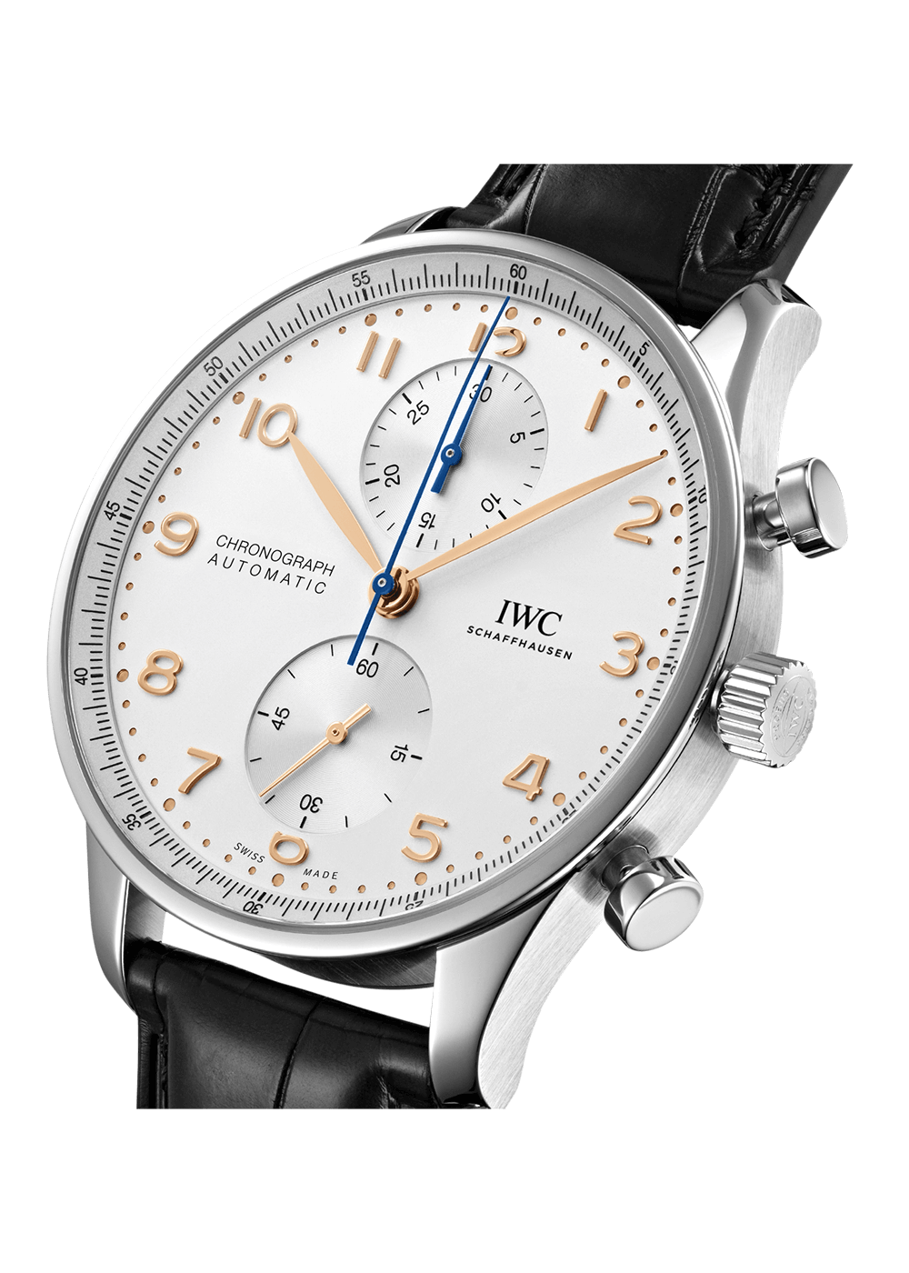 The Portugieser Chronograph has been the most sought-after model in the Portugieser family since 1998. Back then, it was the first Portugieser watch that not only allowed the wearer to read the time, but also to stop it. Its moderate, 40.9-millimetre diameter also makes it ideal for a more slender wrist.