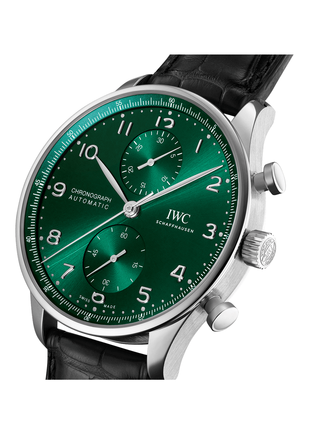 The Portuguese Chronograph has been the most sought-after model in the Portuguese family since 1998. At that time, it was the first Portuguese watch from which time could not only be read, but also stopped. The moderate case size of 40.9 millimetres makes the chronograph attractive even for narrow wrists.
