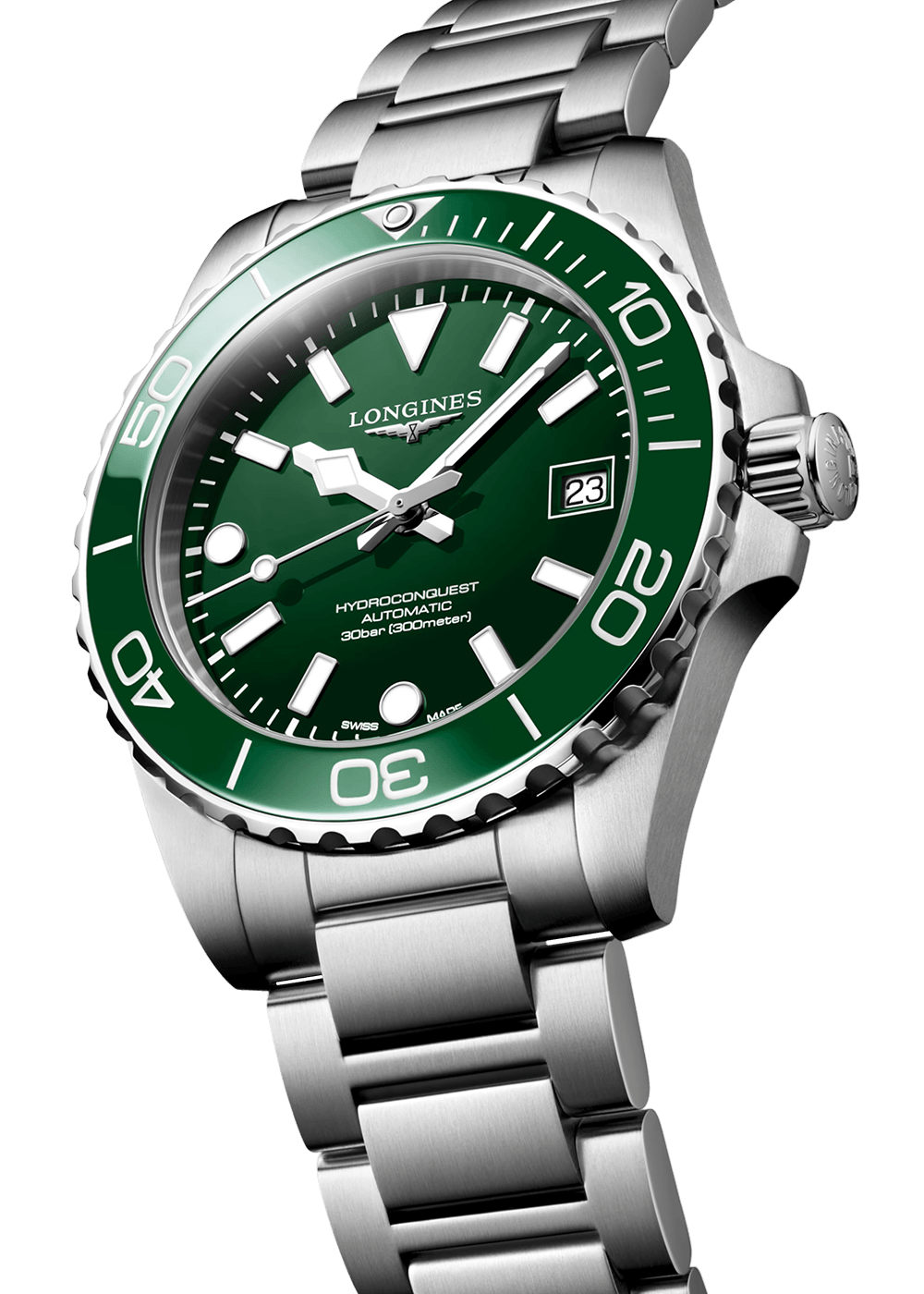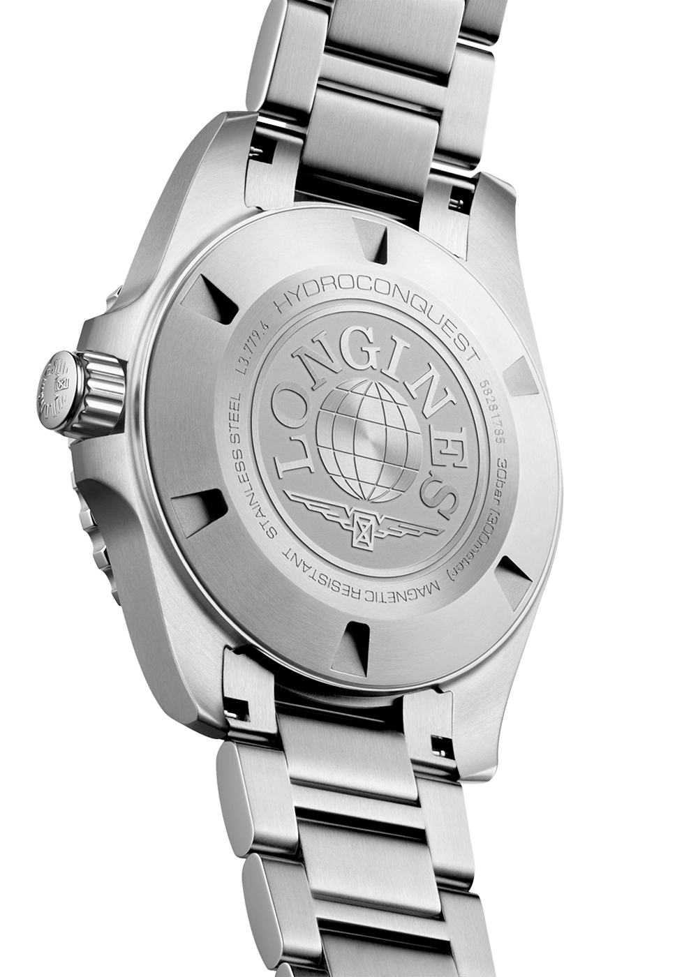 The HYDROCONQUEST collection combines modern aesthetics with proven performance. Powered by an exclusive LONGINES caliber, water-resistant to 30 bar (300 m), with a unidirectional rotating bezel, a screw-down crown, and a screw-down case back.