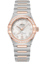 The watch features a 29mm case with a stainless steel and 18-karat yellow gold bracelet and incorporates many of the signature features of the Constellation line, such as polished claws, crescent-shaped facets and a diamond-set bezel.