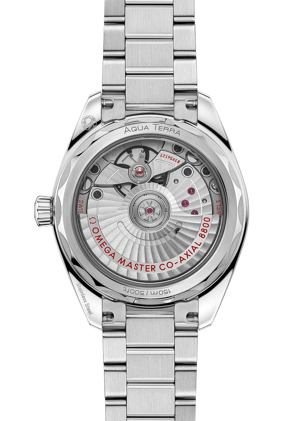 The Seamaster Aqua Terra pays homage to OMEGA’s great maritime heritage. This model has a symmetrical case and crown in fully polished stainless steel and a wave décor on the case back.