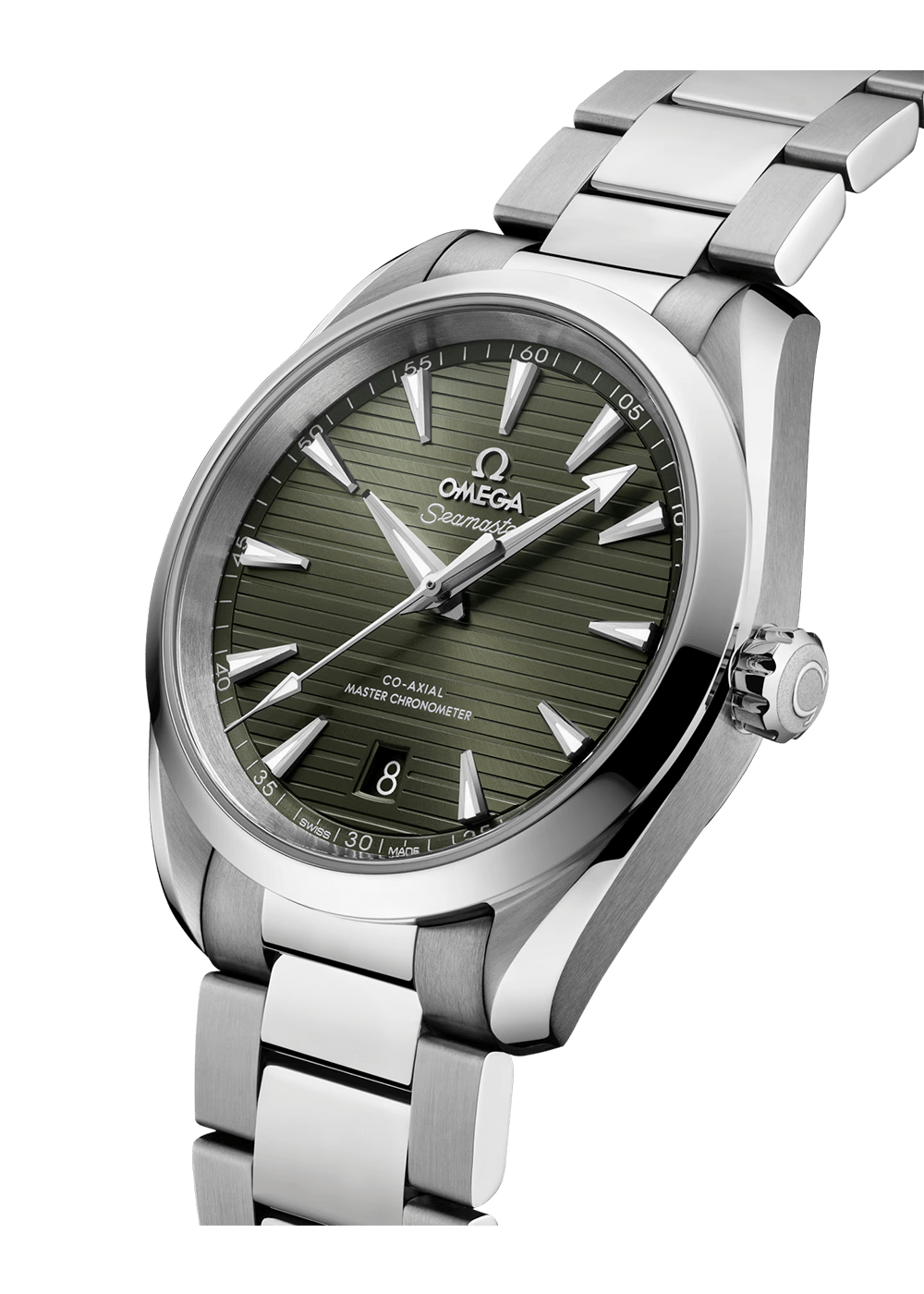 Held on the wrist by a polished and brushed bracelet with OMEGA’s patented screw and pin system, the watch is powered by the OMEGA Master Chronometer Caliber 8800, which is certified by the Swiss Federal Institute of Metrology (METAS) and meets the highest industry standards.