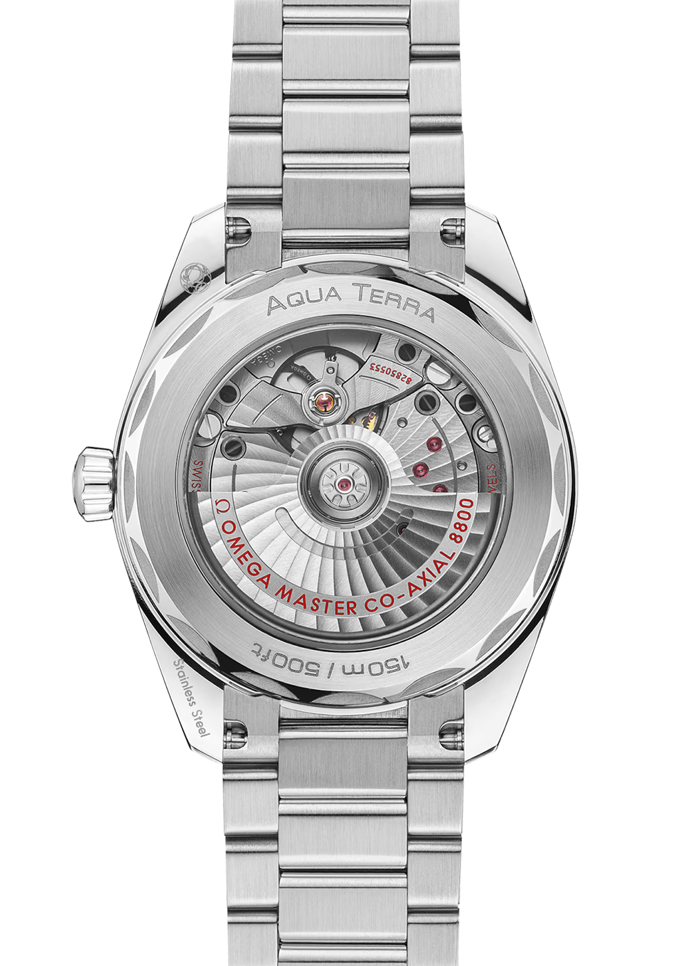 The Seamaster Aqua Terra pays homage to OMEGA’s great maritime heritage. This model has a symmetrical case and crown in fully polished stainless steel and a wave décor on the case back.