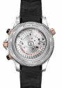 This 44 mm chronograph model is crafted from stainless steel and 18K Sedna™ gold, and includes a polished black ceramic bezel with a Ceragold™ diving scale. The pushers are also polished black ceramic, as well as the dial which features laser-engraved waves and a date window at 6 o’clock.