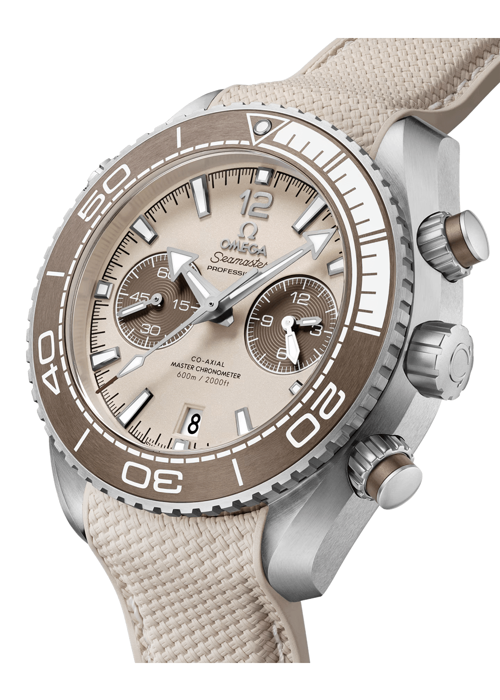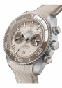 This chronograph features a 45.50 mm brushed stainless steel case and pushers with brushed silicon nitride ceramic rings in a new bronze colour. The same bronze colour is also used for the bezel ring made of brushed silicon nitride ceramic with a diver’s scale made of liquid ceramic and Super-LumiNova.