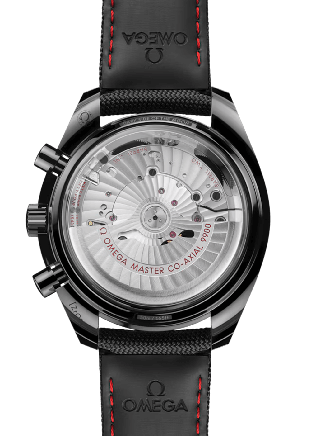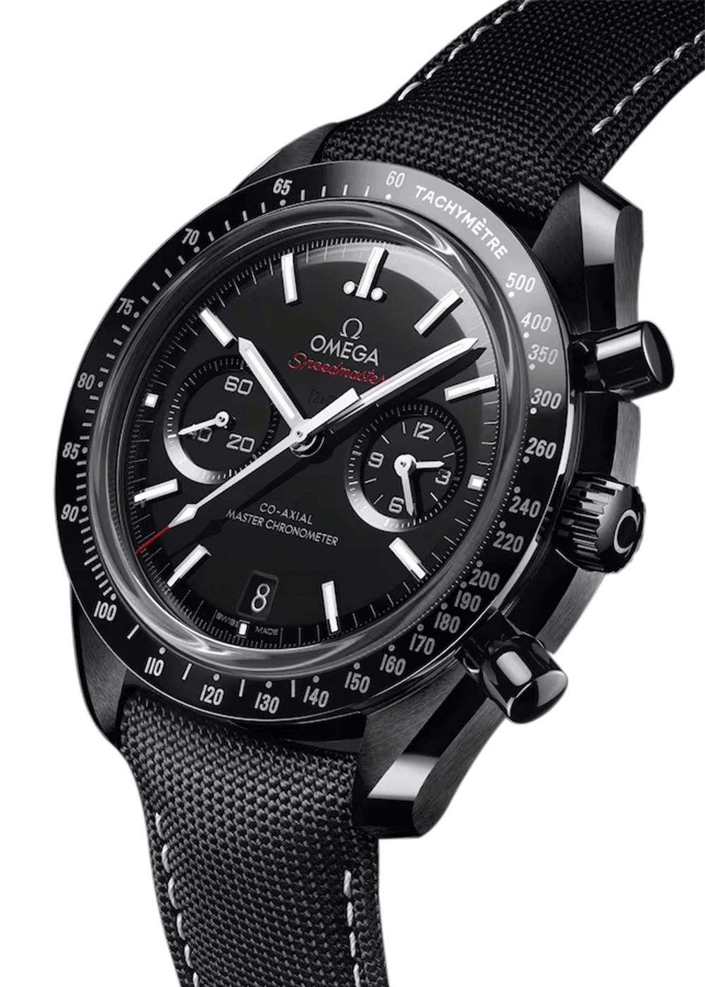 Paying homage to OMEGA’s legacy in space exploration, this Speedmaster Dark Side of the Moon features a 44.25 mm polished black ceramic case. The polished bezel is also made of black ceramic and features a Liquidmetal™ tachymeter scale.