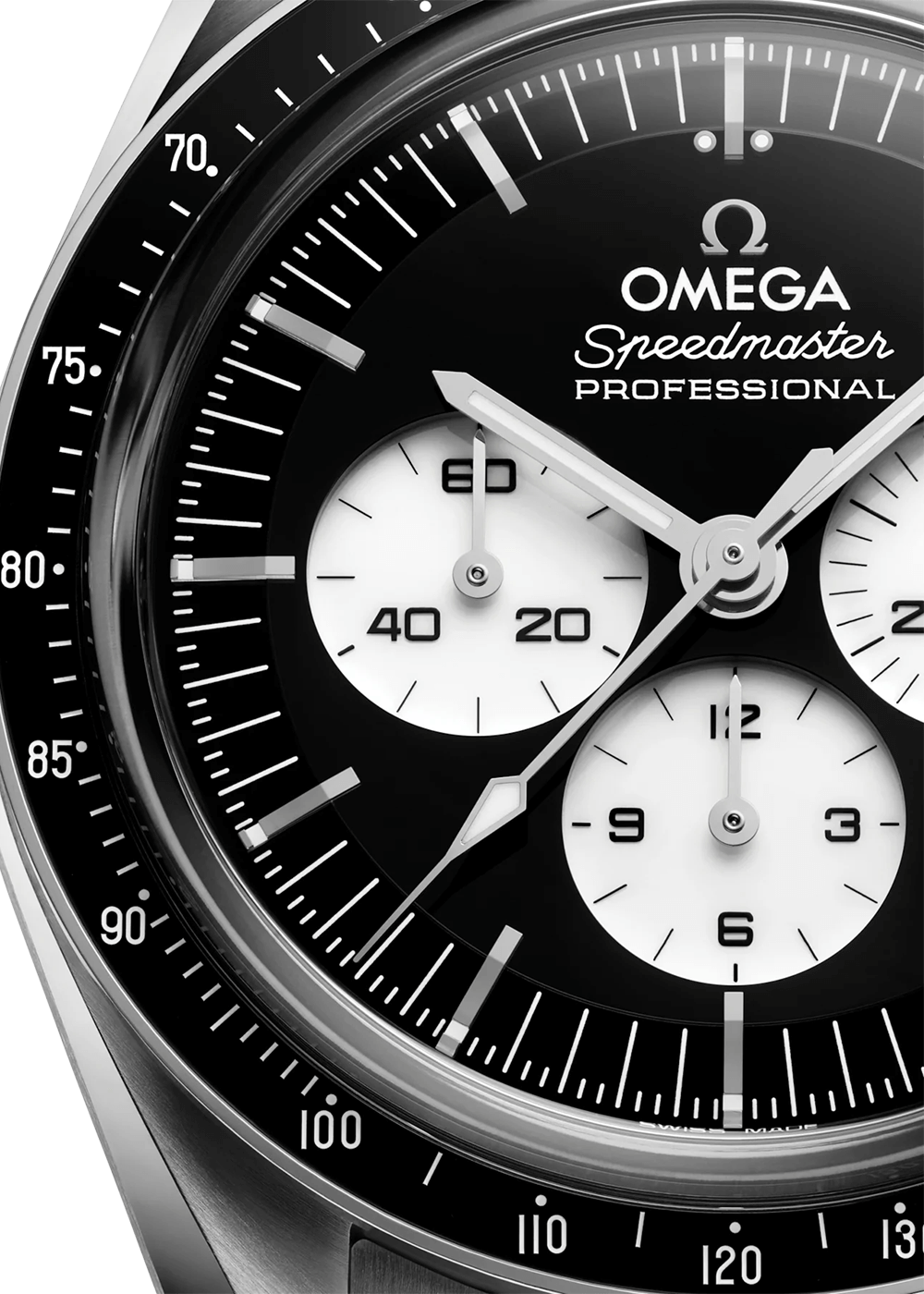 At the beginning of 2026, a reverse panda dial was added to the Speedmaster Moonwatch collection. Technically based on previous Moonwatch models, these watches feature newly designed two-tier dials. The subdials (totalizers) are recessed deeper into the dial, creating greater visual depth.