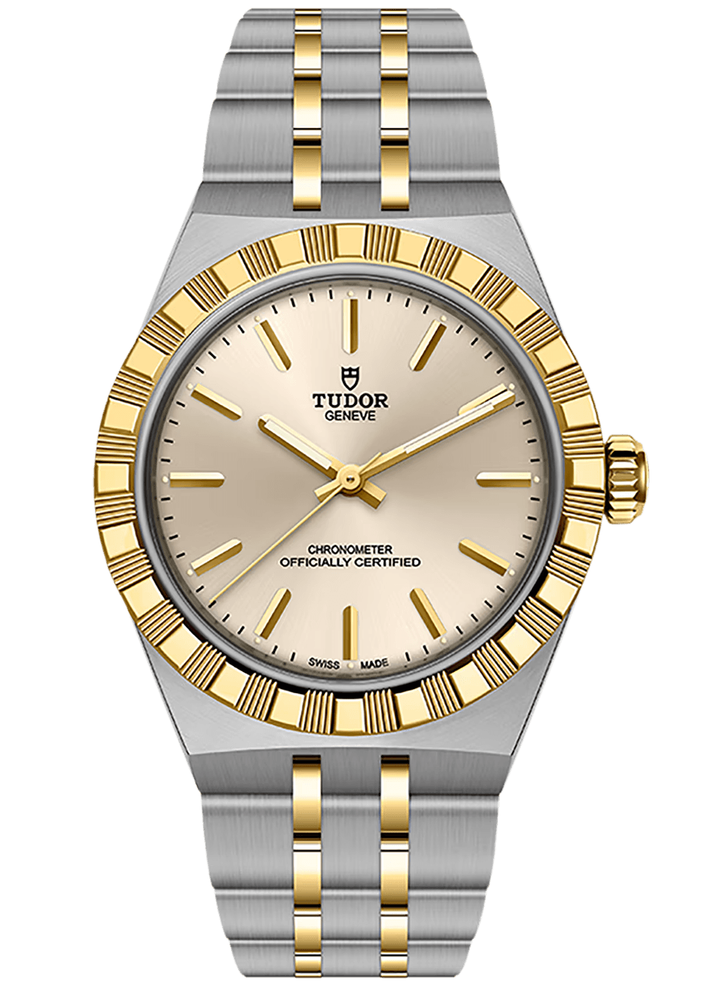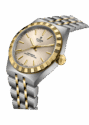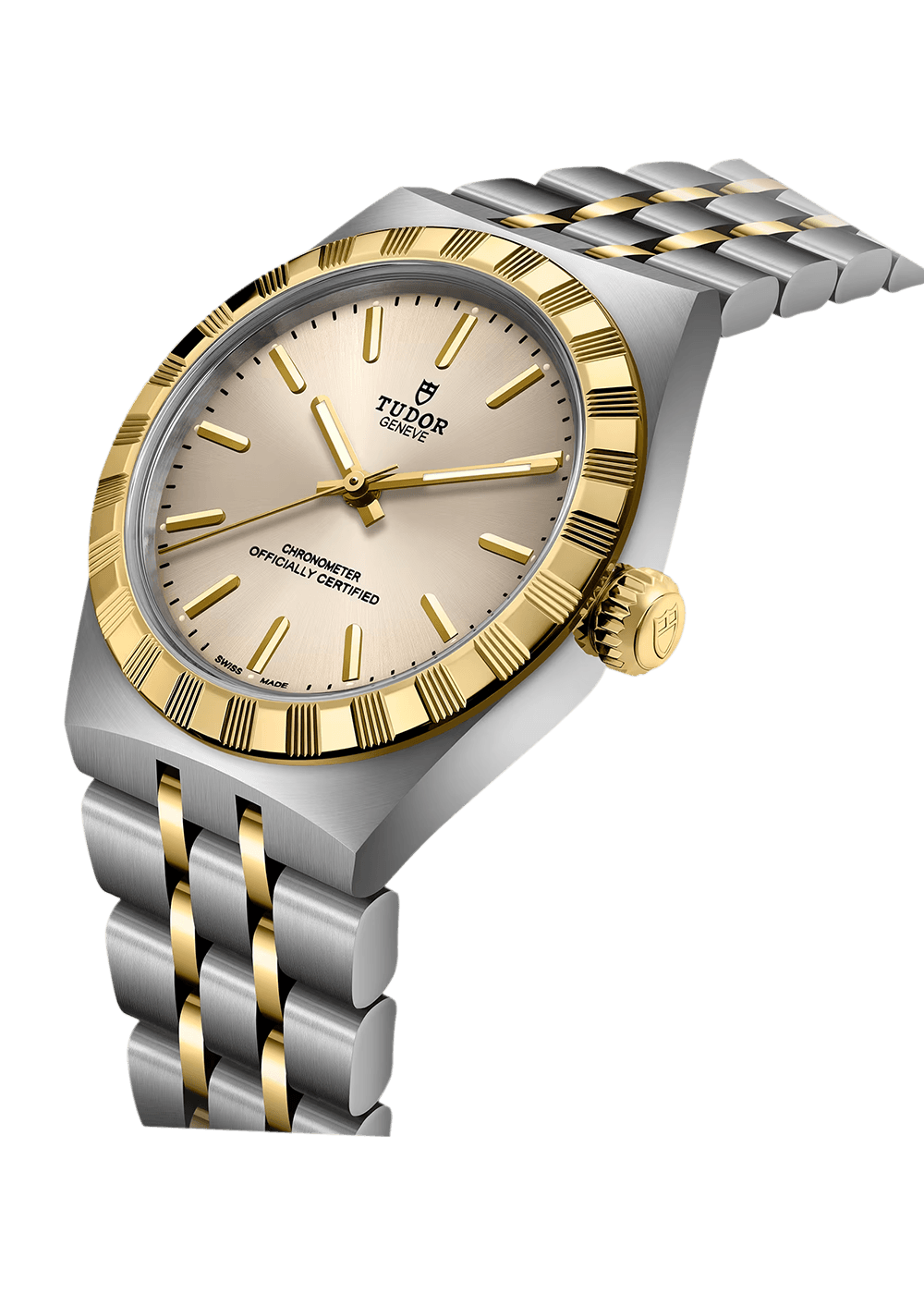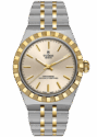 The TUDOR Royal captivates with its fluid and stylish design, which creates a seamless connection to the case thanks to its integrated metal bracelet. The distinctive bracelet structure, featuring three wide satin-finished and two narrower polished elements, combined with the innovative “T-fit” clasp, underscores the exceptional comfort of this luxury watch.