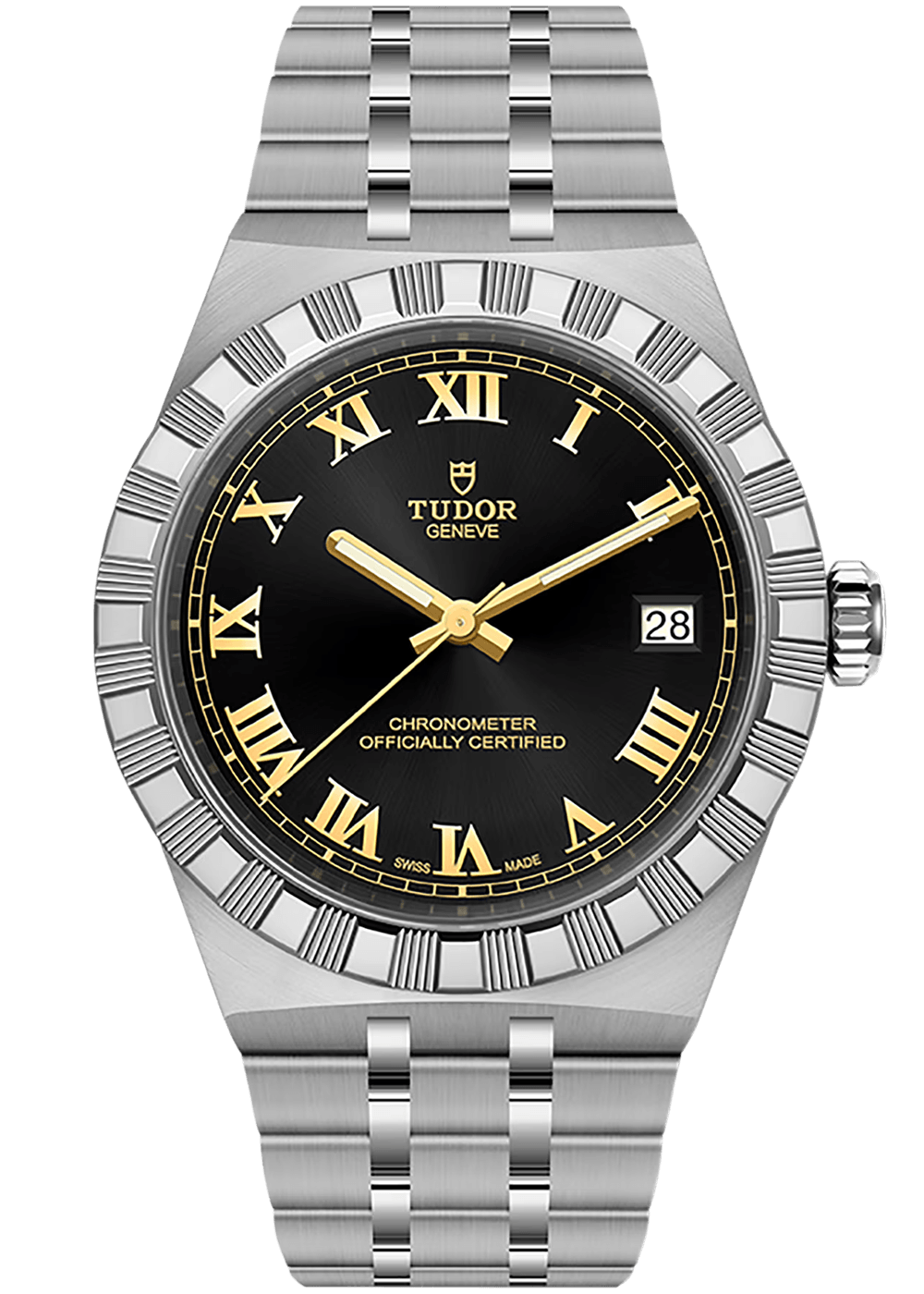 The TUDOR Royal captivates with its fluid and stylish design, which creates a seamless connection to the case thanks to its integrated metal bracelet. The distinctive bracelet structure, featuring three wide satin-finished and two narrower polished elements, combined with the innovative “T-fit” clasp, underscores the exceptional comfort of this luxury watch.