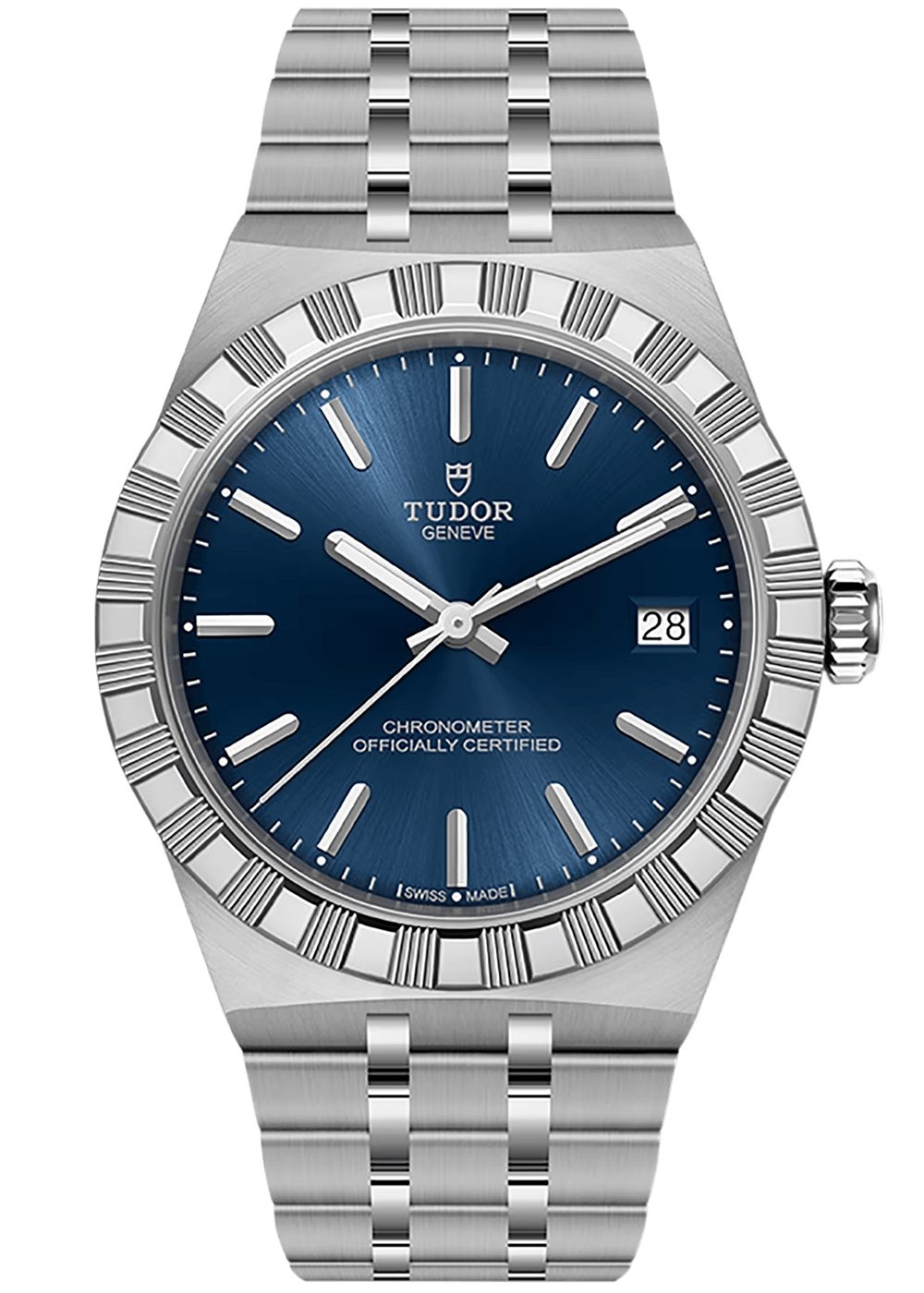 The TUDOR Royal captivates with its fluid and stylish design, which creates a seamless connection to the case thanks to its integrated metal bracelet. The distinctive bracelet structure, featuring three wide satin-finished and two narrower polished elements, combined with the innovative “T-fit” clasp, underscores the exceptional comfort of this luxury watch.