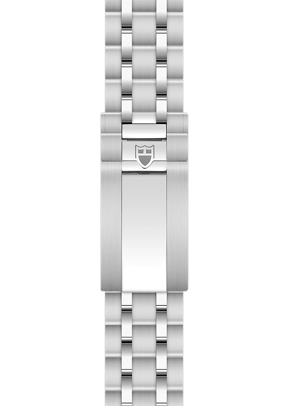 Die feststehende Edelstahl-Lünette mit Tachymeterskala auf einer Zahlenscheibe aus schwarz eloxiertem Aluminium unterstreicht den eleganten und zugleich sportlichen Charakter dieses Chronographen. Seit 2025 ist dieses Modell zudem mit dem attraktiven 5-Glieder-Stahlarmband erhältlich, ausgestattet mit der TUDOR „T-fit“-Schliesse und praktischem Schnellverstellsystem für maximalen Tragekomfort.