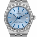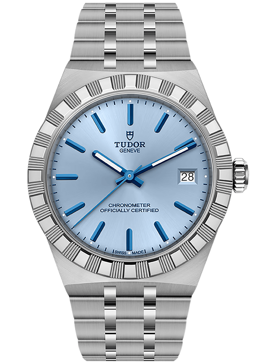 The TUDOR Royal captivates with its fluid and stylish design, which creates a seamless connection to the case thanks to its integrated metal bracelet. The distinctive bracelet structure, featuring three wide satin-finished and two narrower polished elements, combined with the innovative “T-fit” clasp, underscores the exceptional comfort of this luxury watch.