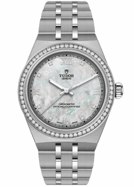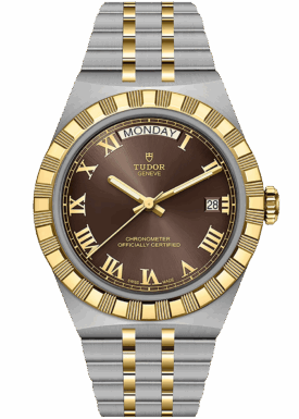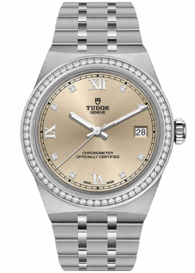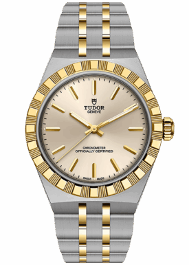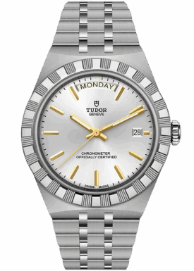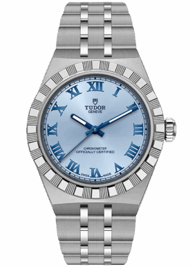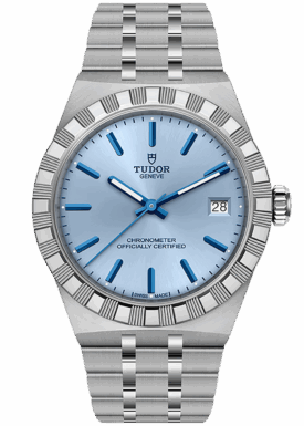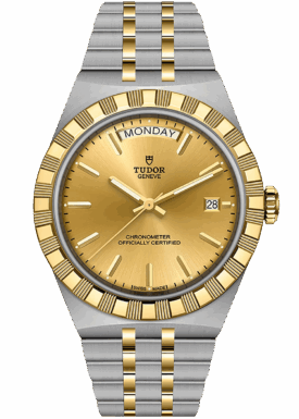 With its integrated metal bracelet, which blends seamlessly into the case, the TUDOR Royal is characterised by a fluid and stylish design. Featuring three wide satin-finished links, flanked by two narrower polished links, and a ‘T-fit’ clasp, the smooth texture of its surfaces highlights the great attention TUDOR pays to wearing comfort. Available in stainless steel or with alternating elements in stainless steel and yellow gold, the models in this line appeal to every taste with their finely finished surfaces.