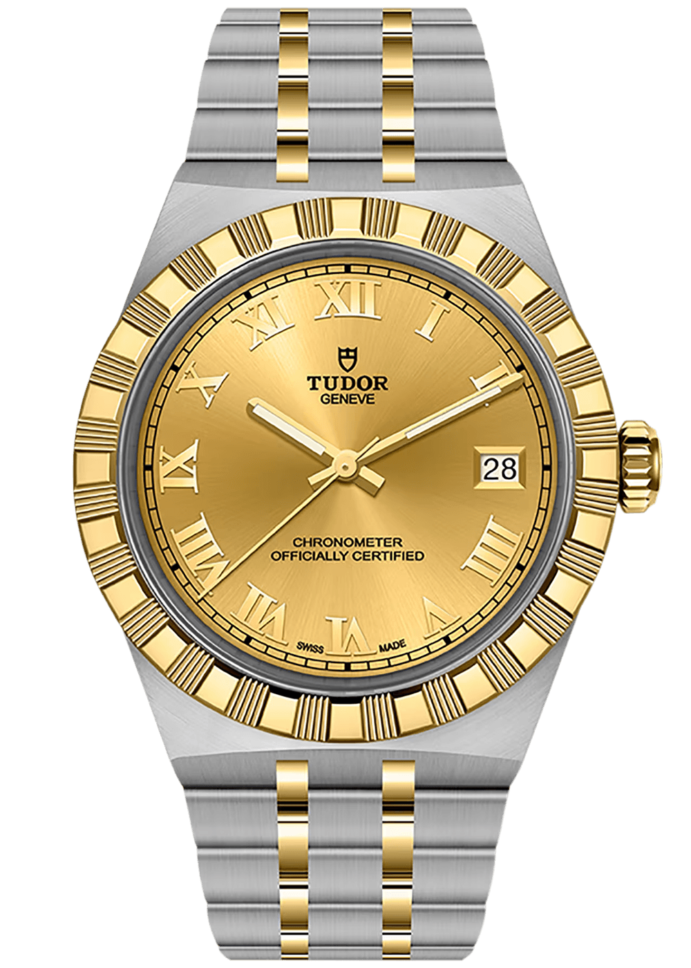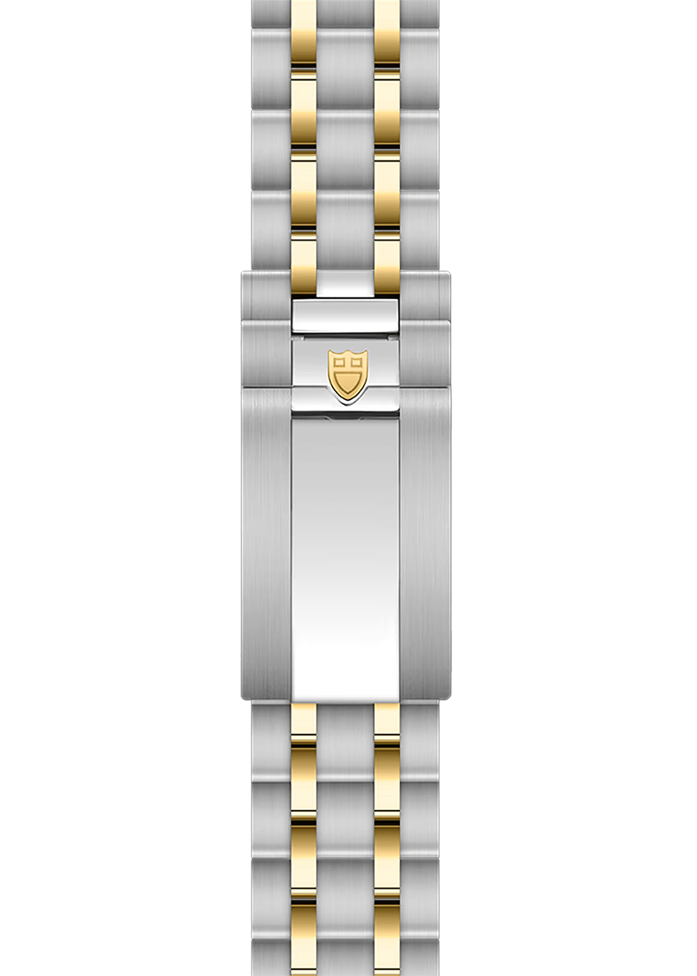 With its integrated metal bracelet, which blends seamlessly into the case, the TUDOR Royal is characterised by a fluid and stylish design. Featuring three wide satin-finished links, flanked by two narrower polished links, and a ‘T-fit’ clasp, the smooth texture of its surfaces highlights the great attention TUDOR pays to wearing comfort. Available in stainless steel or with alternating elements in stainless steel and yellow gold, the models in this line appeal to every taste with their finely finished surfaces.