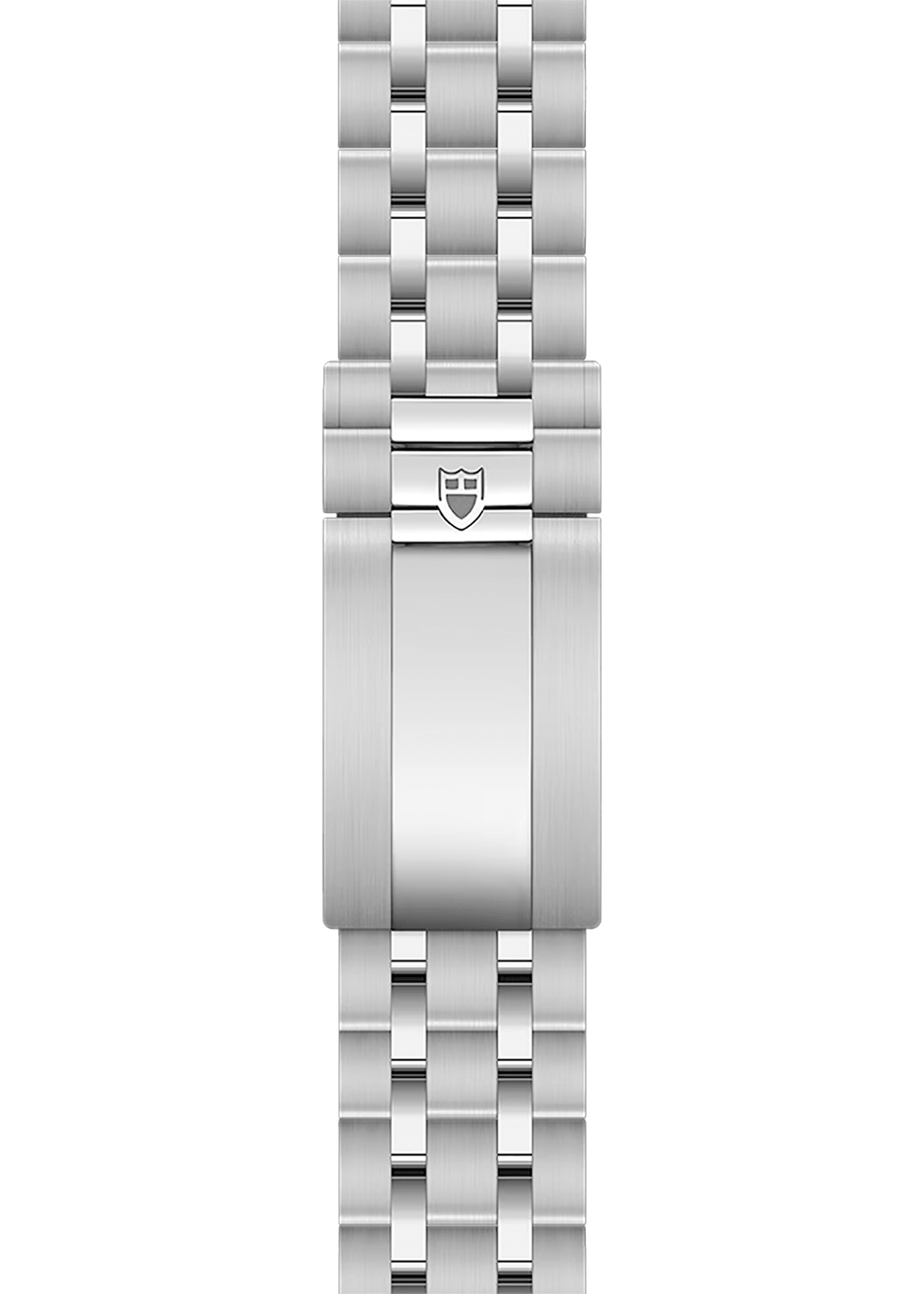 Die feststehende Edelstahl-Lünette mit Tachymeterskala auf einer Zahlenscheibe aus schwarz eloxiertem Aluminium unterstreicht den eleganten und zugleich sportlichen Charakter dieses Chronographen. Seit 2025 ist dieses Modell zudem mit dem attraktiven 5-Glieder-Stahlarmband erhältlich, ausgestattet mit der TUDOR „T-fit“-Schliesse und praktischem Schnellverstellsystem für maximalen Tragekomfort.