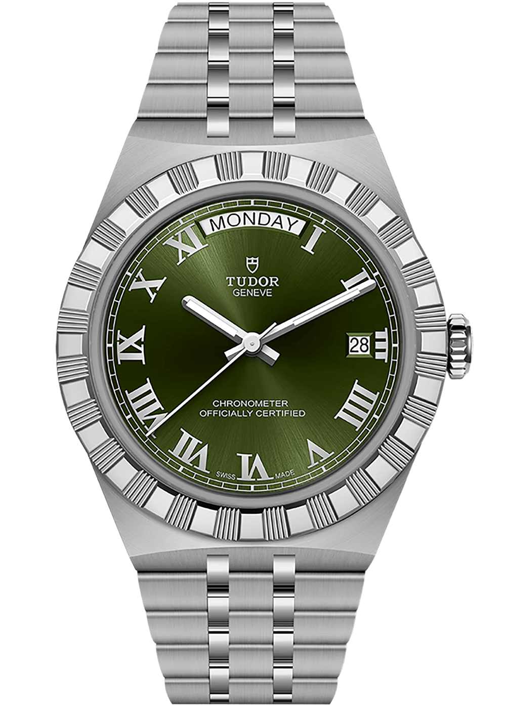 With its integrated metal bracelet, which blends seamlessly into the case, the TUDOR Royal is characterised by a fluid and stylish design. Featuring three wide satin-finished links, flanked by two narrower polished links, and a ‘T-fit’ clasp, the smooth texture of its surfaces highlights the great attention TUDOR pays to wearing comfort. Available in stainless steel or with alternating elements in stainless steel and yellow gold, the models in this line appeal to every taste with their finely finished surfaces.