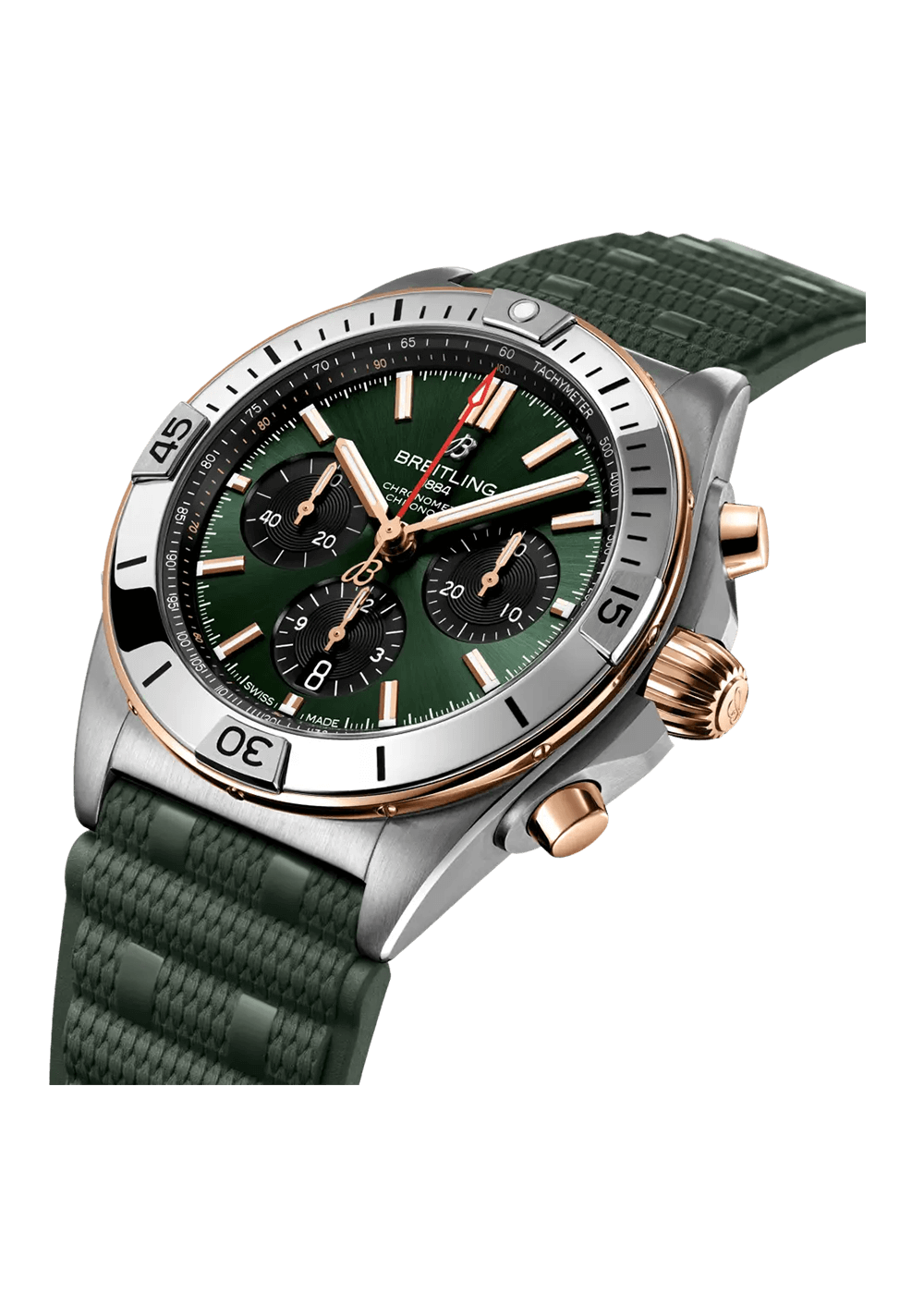 Eine Breitling-Uhr für jede Situation und Aktivität. Die Chronomat nimmt einen wichtigen Platz in der Geschichte von Breitling ein. Die Markteinführung erfolgte 1984, zu einer Zeit, in der besonders flache Quarzuhren angesagt waren. Breitling setzte dabei mutig auf eine eindrucksvoll proportionierte mechanische Uhr. Die Chronomat beruht auf dem Chronograph Frecce Tricolori, der in Zusammenarbeit mit der berühmten italienischen Flugstaffel entwickelt und 1983 auf dem Markt eingeführt wurde. Mit dem Modell wurde stilvoll das hundertjährige Bestehen von Breitling gefeiert.