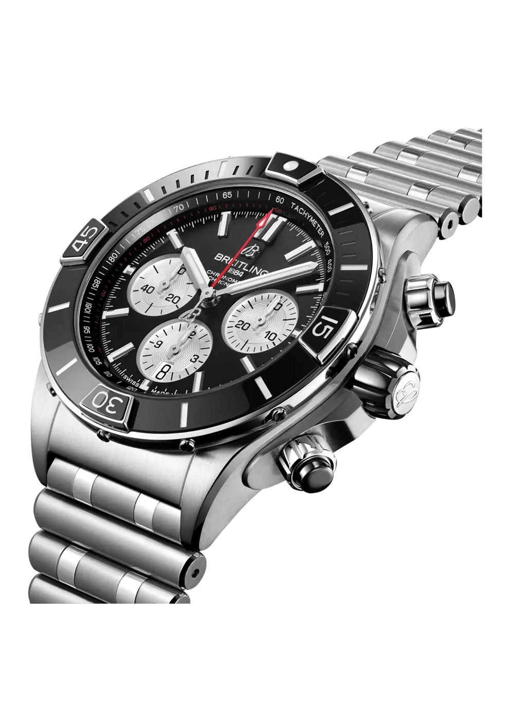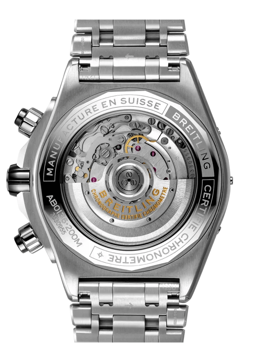 Angetrieben wird sie vom Breitling-Manufakturkaliber 01, welches eine Gangreserve von etwa 70 Stunden bietet. Die Super Chronomat ist bis 200 Meter wasserdicht.