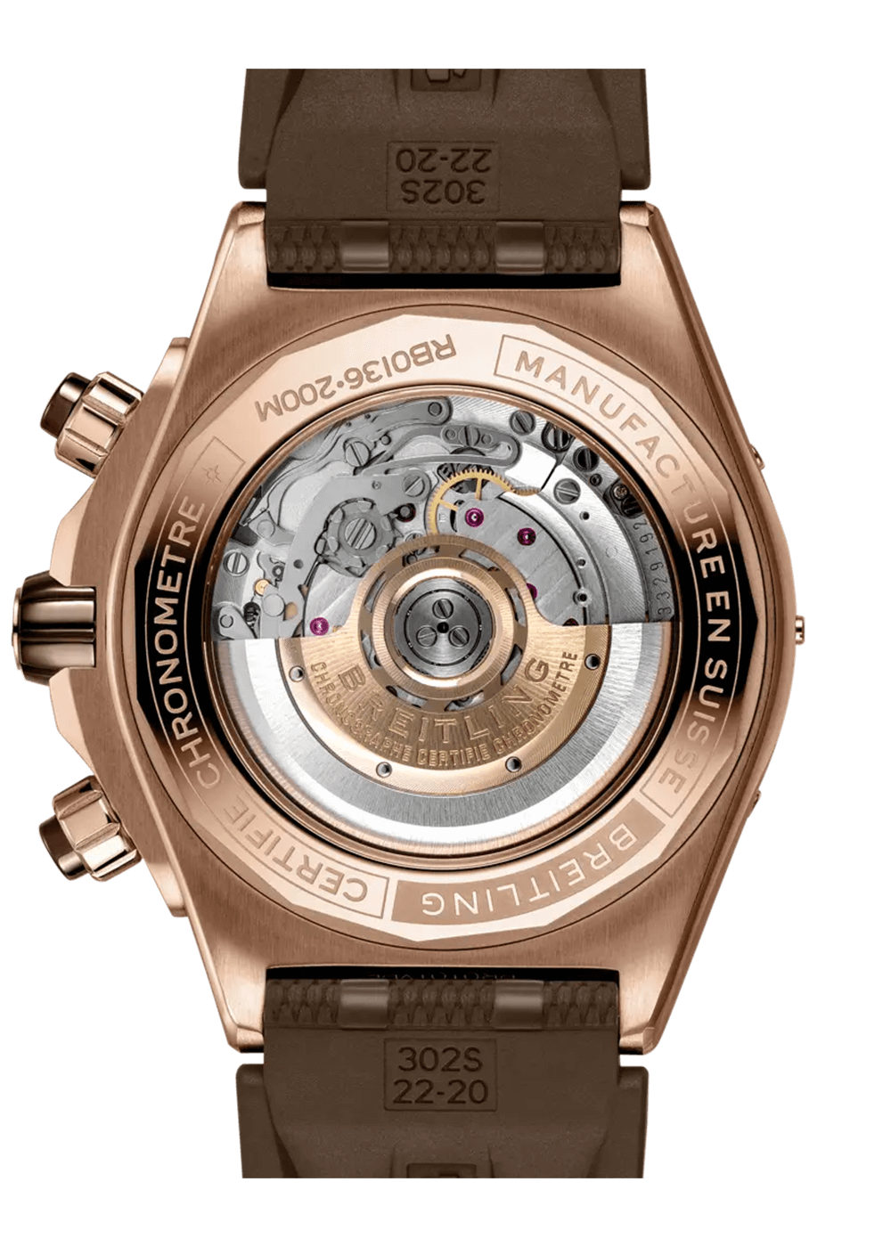 Angetrieben wird sie vom Breitling-Manufakturkaliber 01, welches eine Gangreserve von etwa 70 Stunden bietet. Die Super Chronomat ist bis 200 Meter wasserdicht.
