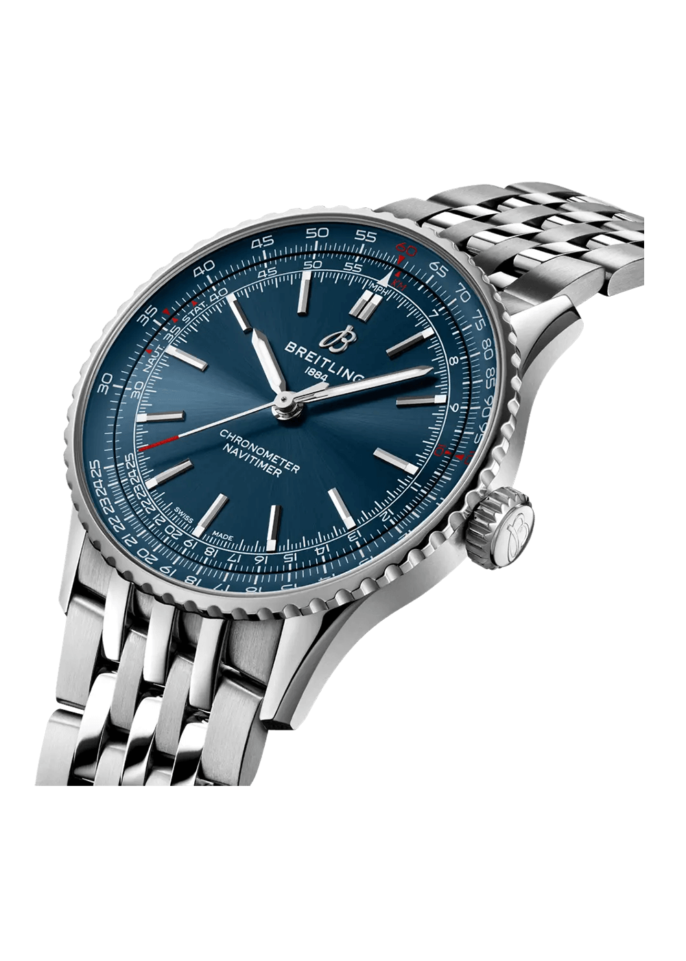 Die Navitimer ist eine der bekanntesten Uhren, die je hergestellt wurden. Sie steht als eine der grossartigsten Uhren aller Zeiten auf den Sammlerlisten. Was 1952 als Instrument für Piloten begann, hat inzwischen eine tiefe Bedeutung für alle, die dieser Zeitmesser auf ihrer persönlichen Reise begleitet. Die Navitimer Automatic und Automatic GMT 41 präsentieren die Essenz des ikonischen Looks, verzichten auf den Chronographen und bewahren dabei ein ausgewogenes Zifferblatt.