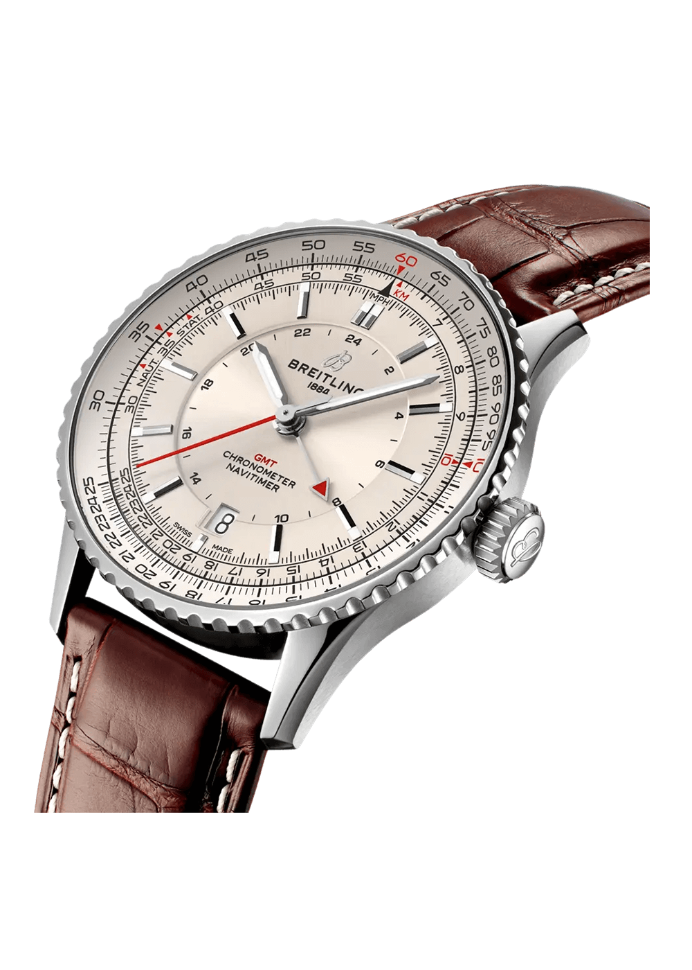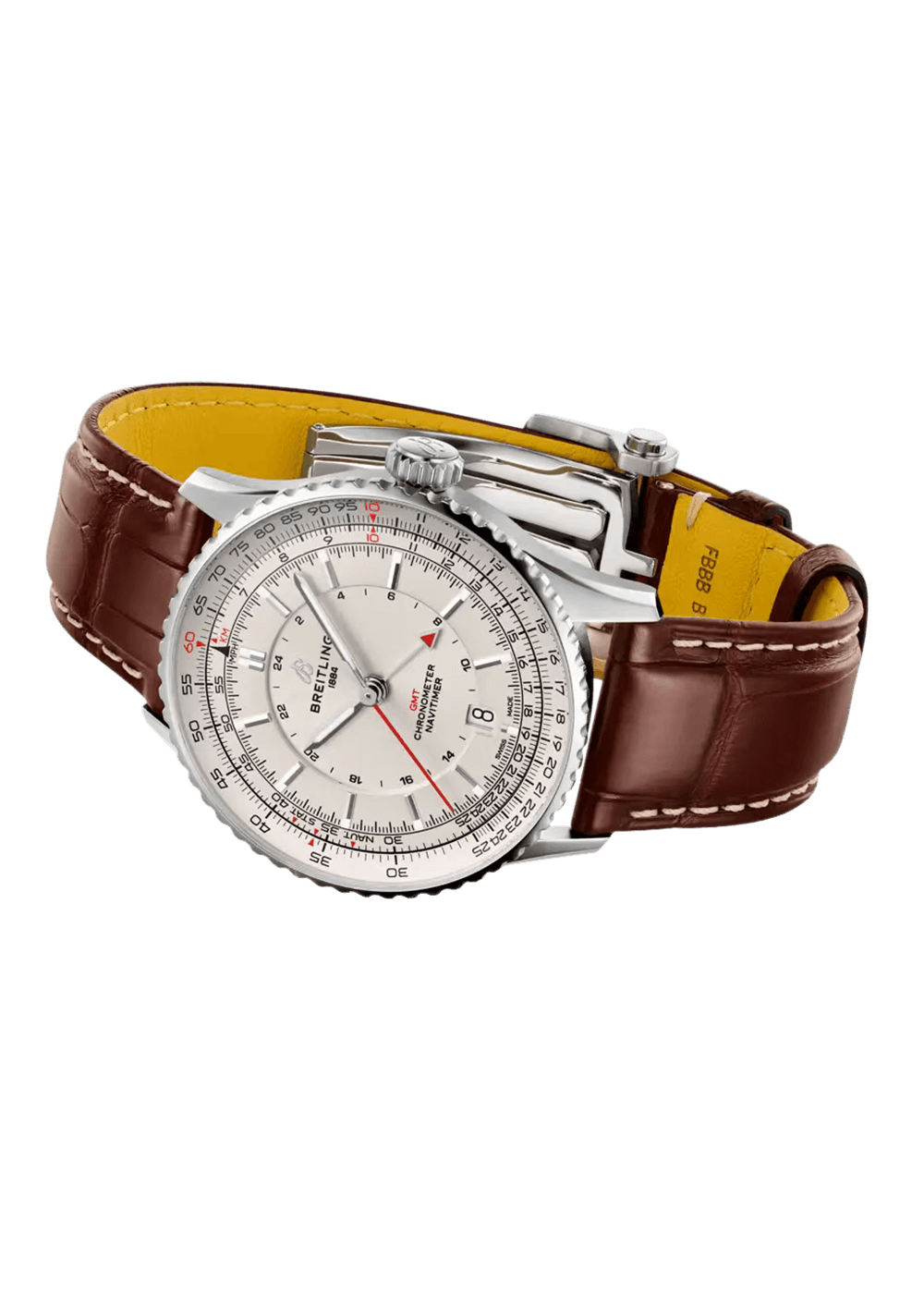 Die Navitimer ist eine der bekanntesten Uhren, die je hergestellt wurden. Sie steht als eine der grossartigsten Uhren aller Zeiten auf den Sammlerlisten. Was 1952 als Instrument für Piloten begann, hat inzwischen eine tiefe Bedeutung für alle, die dieser Zeitmesser auf ihrer persönlichen Reise begleitet. Die Navitimer Automatic und Automatic GMT 41 präsentieren die Essenz des ikonischen Looks, verzichten auf den Chronographen und bewahren dabei ein ausgewogenes Zifferblatt.