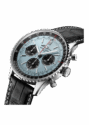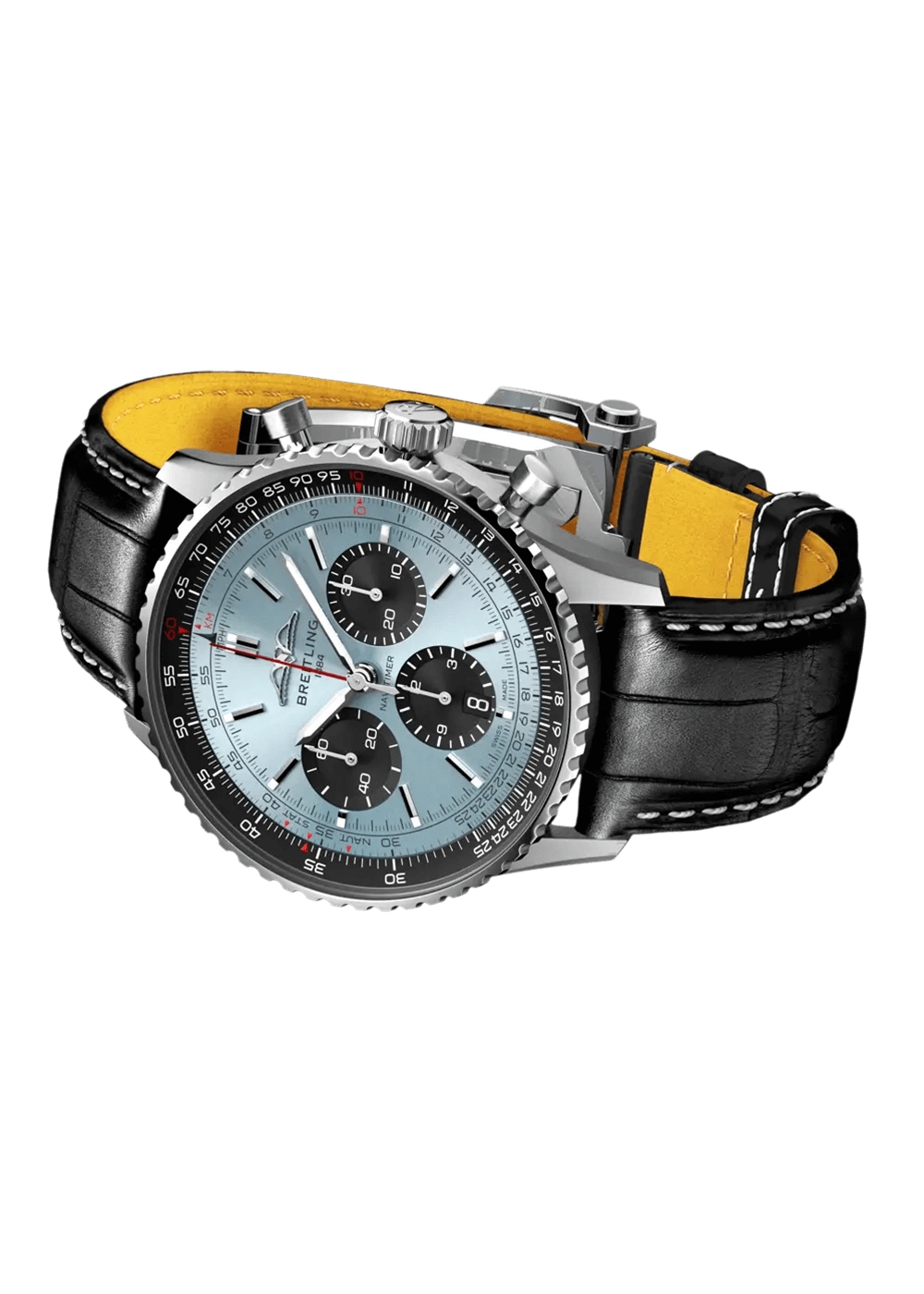 Ein abgeflachter Rechenschieber und ein gewölbtes Glas erzeugen den Eindruck eines kompakteren Profils. Polierte und gebürstete Finishes verleihen den Metallelementen ein hochwertiges, glänzendes, aber dennoch dezentes Aussehen. Getragen von Astronauten im Weltraum und von den grössten Stars der Welt, handelt es sich um den legendärsten Zeitmesser von Breitling und um eine der unverwechselbarsten Uhren aller Zeiten.