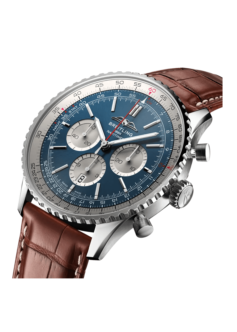 Im Jahr 1952 entwickelte Willy Breitling einen Chronographen mit einem kreisförmigen Rechenschieber, mit dem Piloten alle notwendigen Flugberechnungen durchführen konnten. Zwei Jahre später ernannte die amerikanische Aircraft Owners and Pilots Association (AOPA), der grösste Piloten-Club der Welt, sein Design zu ihrem offiziellen Zeitmesser. Das Flügellogo des Verbands prangte auf der 12-Uhr-Position, und damit war die “Navigation Timer” – oder schlicht Navitimer – geboren.