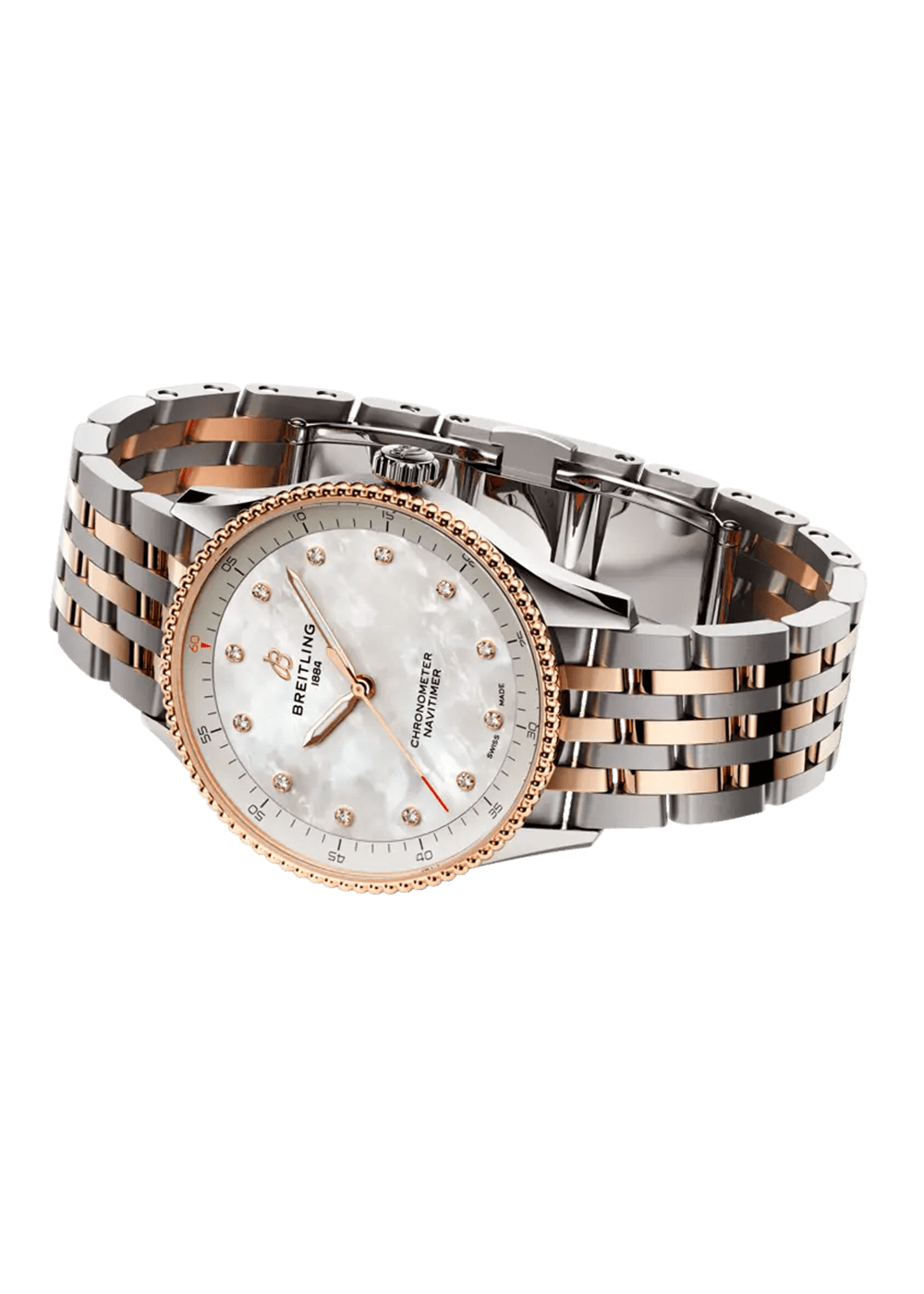 Die Ikone kommt jetzt in den Grössen 36 und 32 mm für Frauen und Männer, die die Optik und Haptik einer Uhr mit kleinerem Durchmesser lieben. Während die 36-mm-Navitimer die Perlenlünette und den ikonischen kreisförmigen Rechenschieber aufweist, die der Navitimer ihr unverkennbares Aussehen verleihen, verzichtet die beeindruckende 32-mm-Variante auf den Rechenschieber zugunsten eines schlichteren Zifferblattdesigns, das auf den schlanken Durchmesser abgestimmt ist.