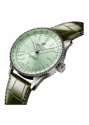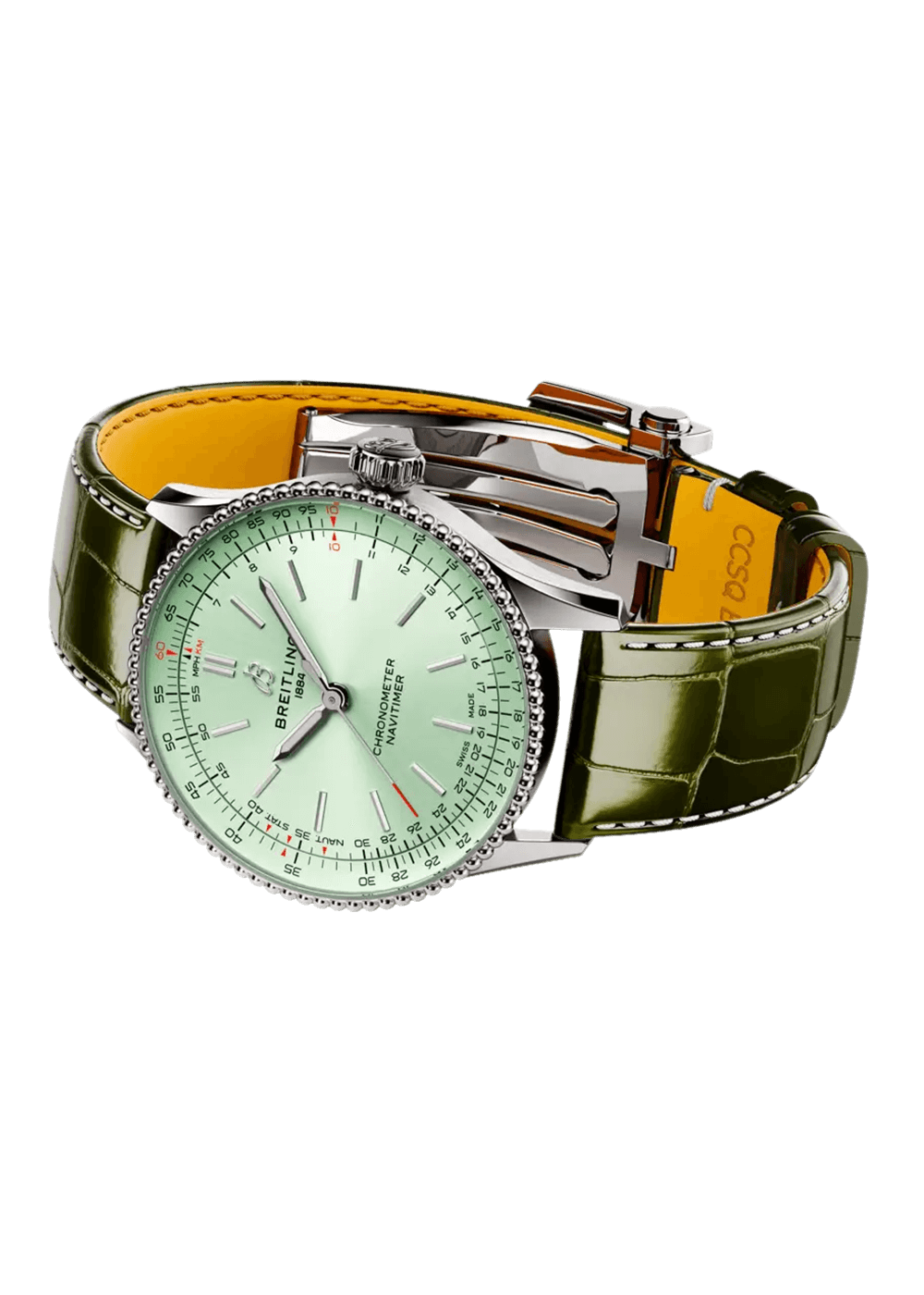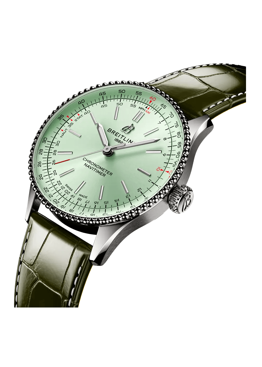 Die Ikone kommt jetzt in den Grössen 36 und 32 mm für Frauen und Männer, die die Optik und Haptik einer Uhr mit kleinerem Durchmesser lieben. Während die 36-mm-Navitimer die Perlenlünette und den ikonischen kreisförmigen Rechenschieber aufweist, die der Navitimer ihr unverkennbares Aussehen verleihen, verzichtet die beeindruckende 32-mm-Variante auf den Rechenschieber zugunsten eines schlichteren Zifferblattdesigns, das auf den schlanken Durchmesser abgestimmt ist.