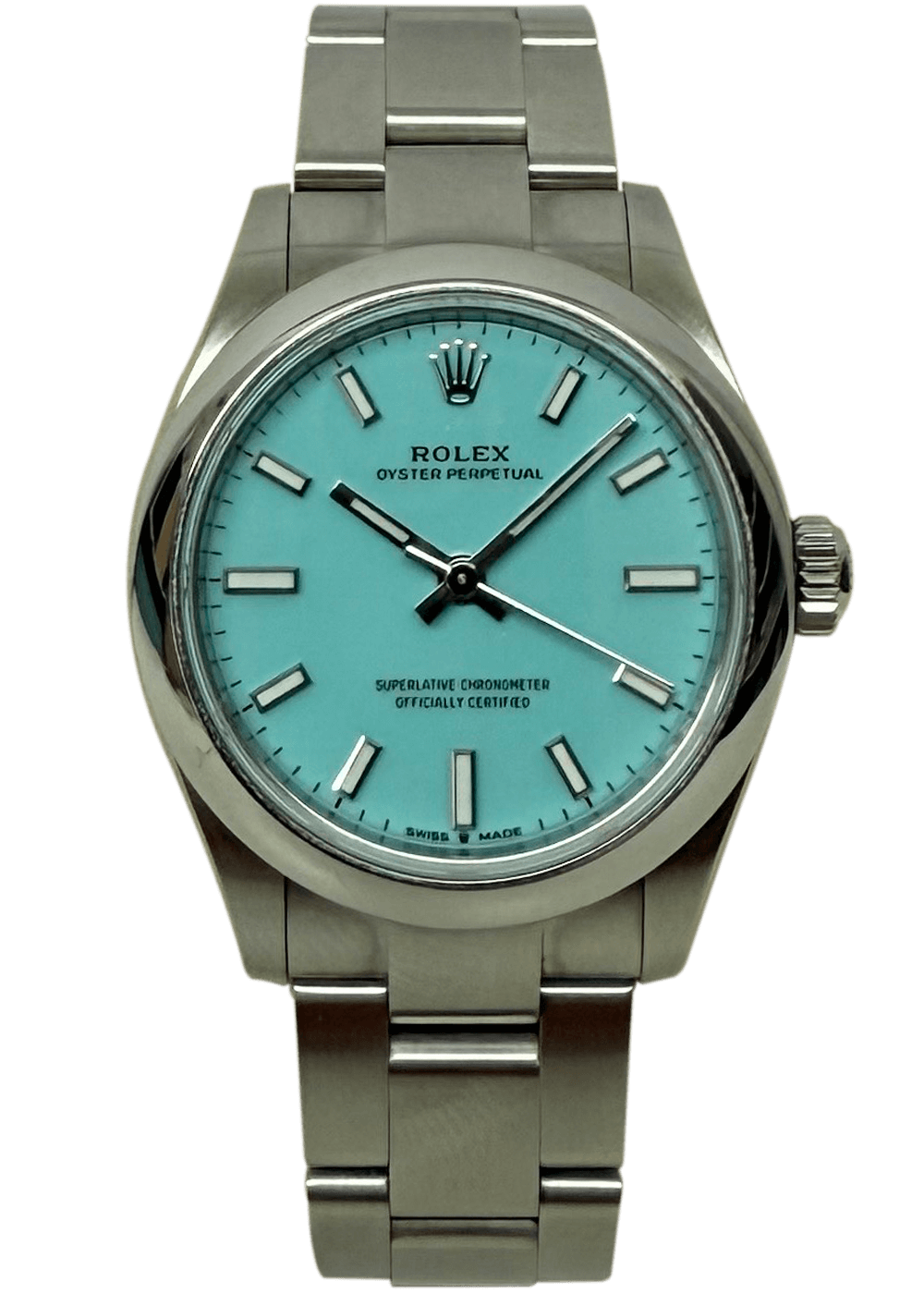 Die Rolex Oyster Perpetual ist eine der ikonischsten Uhren der Marke und steht für zeitloses Design, Präzision und Zuverlässigkeit. Mit ihrem klaren Zifferblatt und dem robusten Oyster-Gehäuse verkörpert sie die Essenz der klassischen Rolex-Ästhetik.