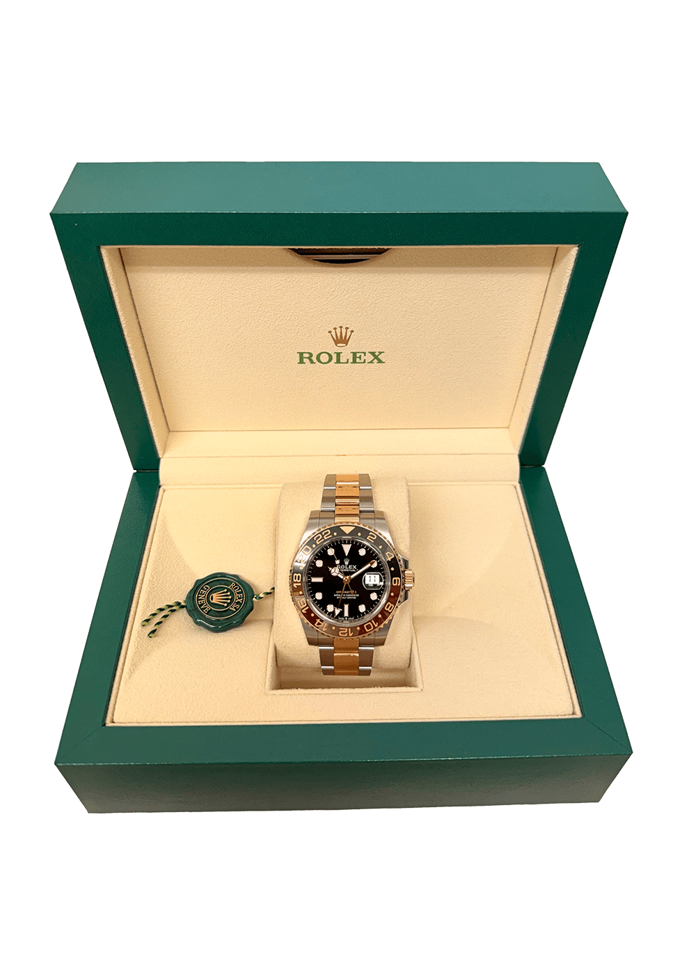 Diese GMT-Master II ist die moderne Interpretation der legendären „Root Beer“ und besticht durch ihre warme Kombination aus Edelstahl und 18 Karat Everose-Gold. Die zweifarbige Lünette in Braun und Schwarz verleiht ihr eine zeitlose Eleganz, die perfekt mit dem luxuriösen Charakter des Rolesor-Gehäuses harmoniert. Als präziser Begleiter für Weltenbummler ermöglicht sie das gleichzeitige Ablesen von zwei Zeitzonen mit höchster Zuverlässigkeit.